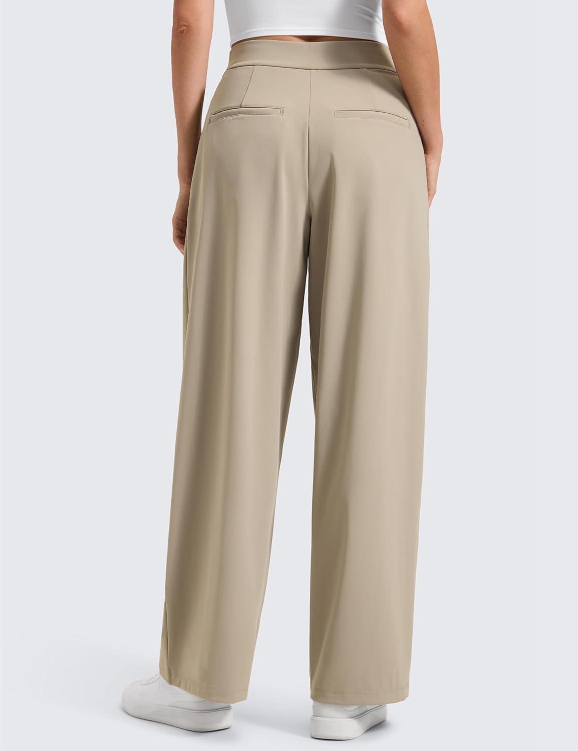 CRZ YOGA 4-Way Stretch Wide Leg Work Pants for Women 29″ – Bussiness Casual Dress Trousers with Pockets(Stone)