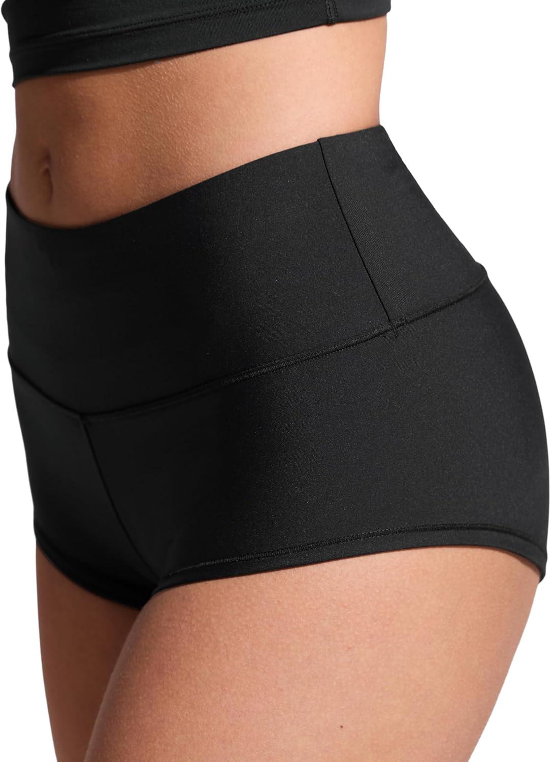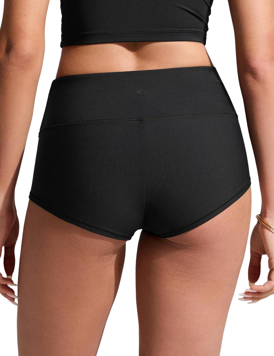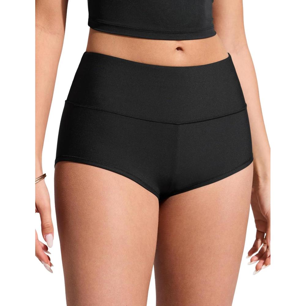 CRZ YOGA Boyshort Bikini Bottoms for Women – Mid Waisted Bathing Suit Board Shorts Quick Dry Beach Trunks with Liner(Black)
