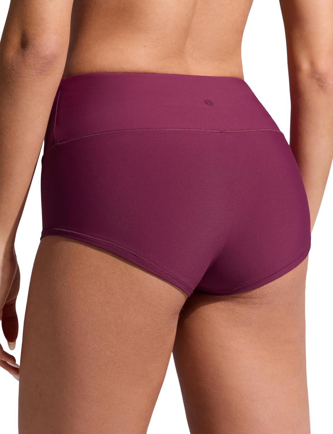 CRZ YOGA Boyshort Bikini Bottoms for Women – Mid Waisted Bathing Suit Board Shorts Quick Dry Beach Trunks with Liner(Fuchsia)