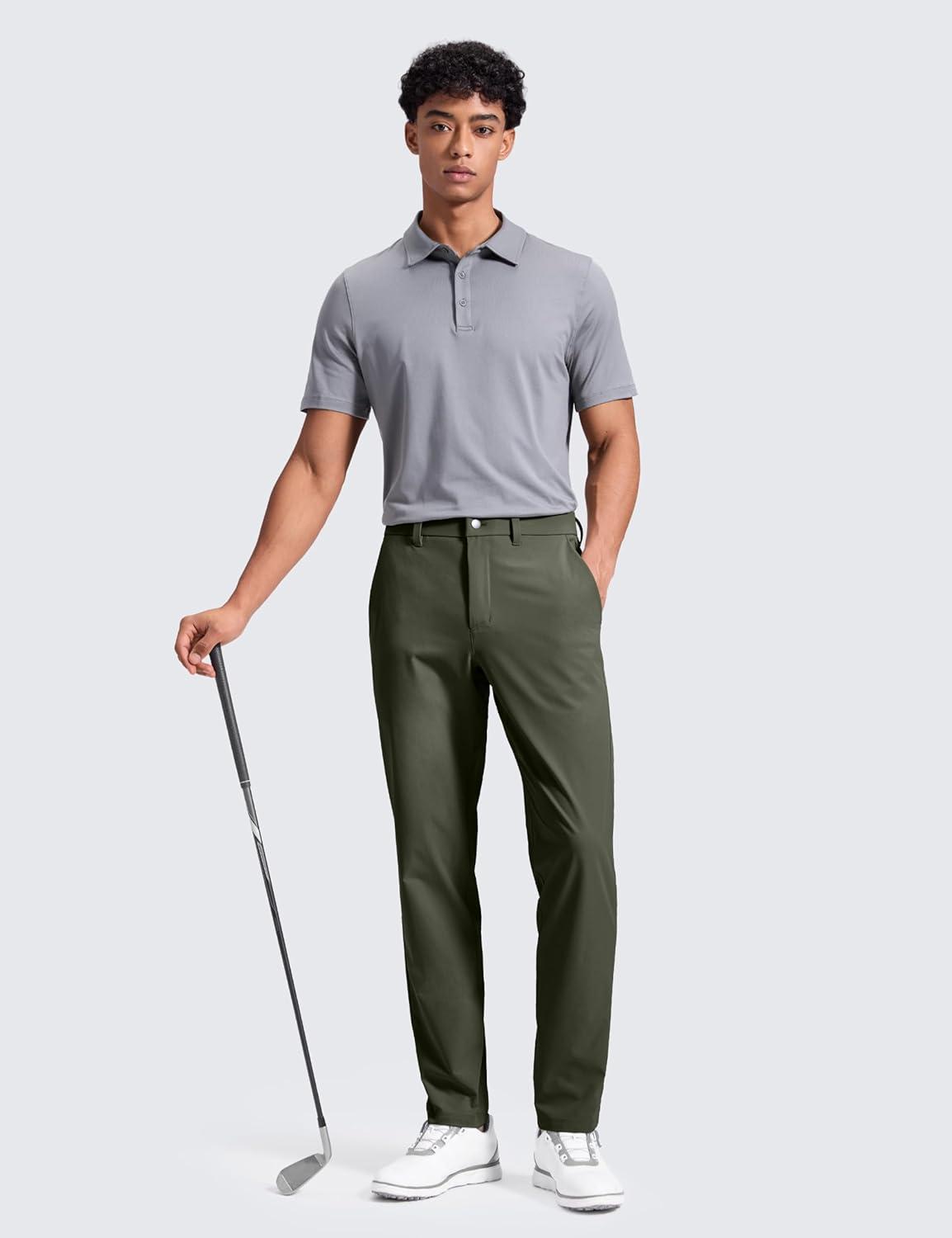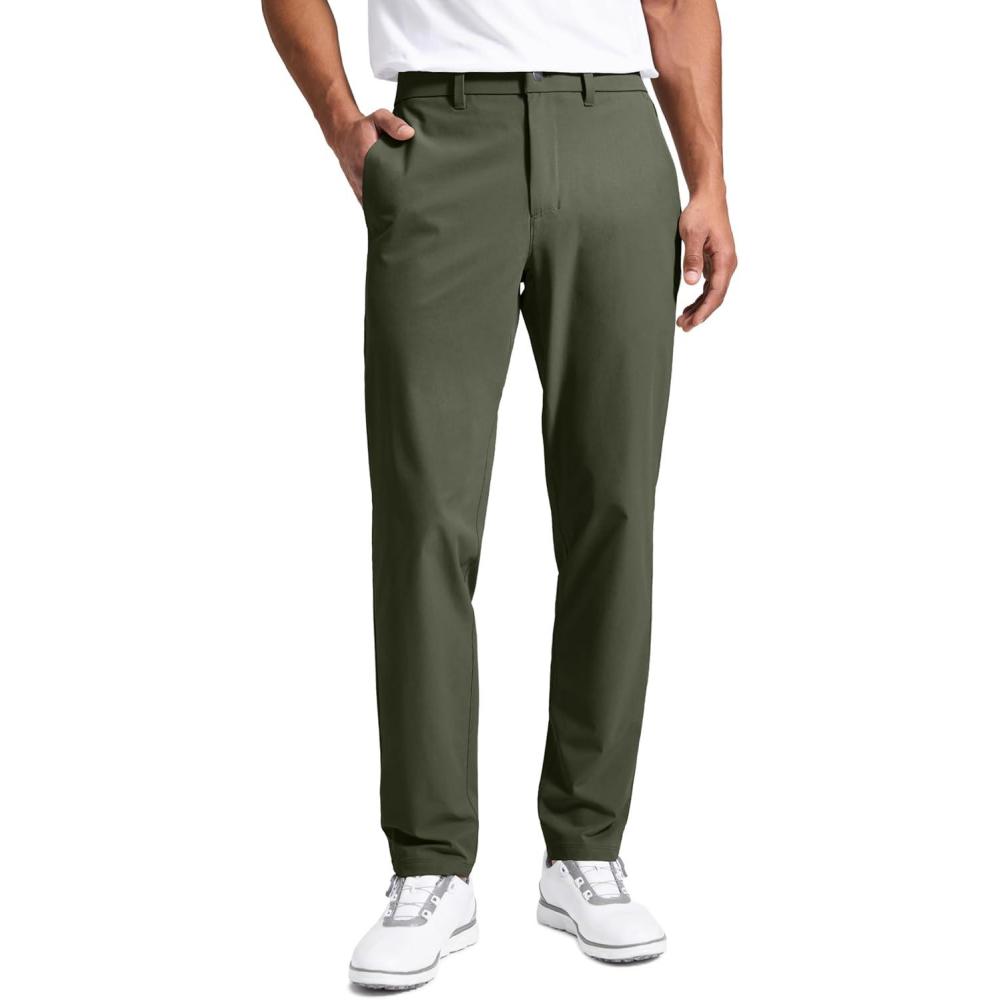CRZ YOGA Breeze Comfy Golf Pants for Men – 30”/32″ Lightweight Quick Dry Casual Athletic Work Dress Trousers with Pockets(Light Army Green)