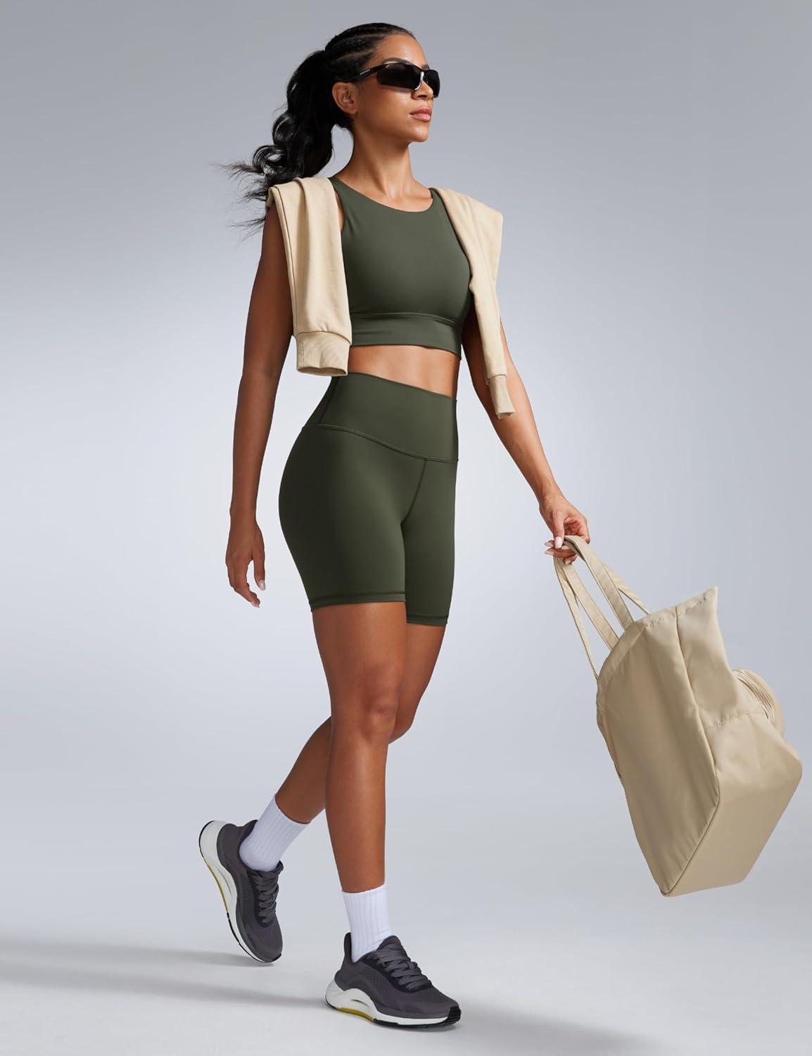 CRZ YOGA Butterbreeze Athletic Biker Shorts 6” – High Waisted Workout Gym Volleyball Running Yoga Tummy Control Womens(Olive Green)