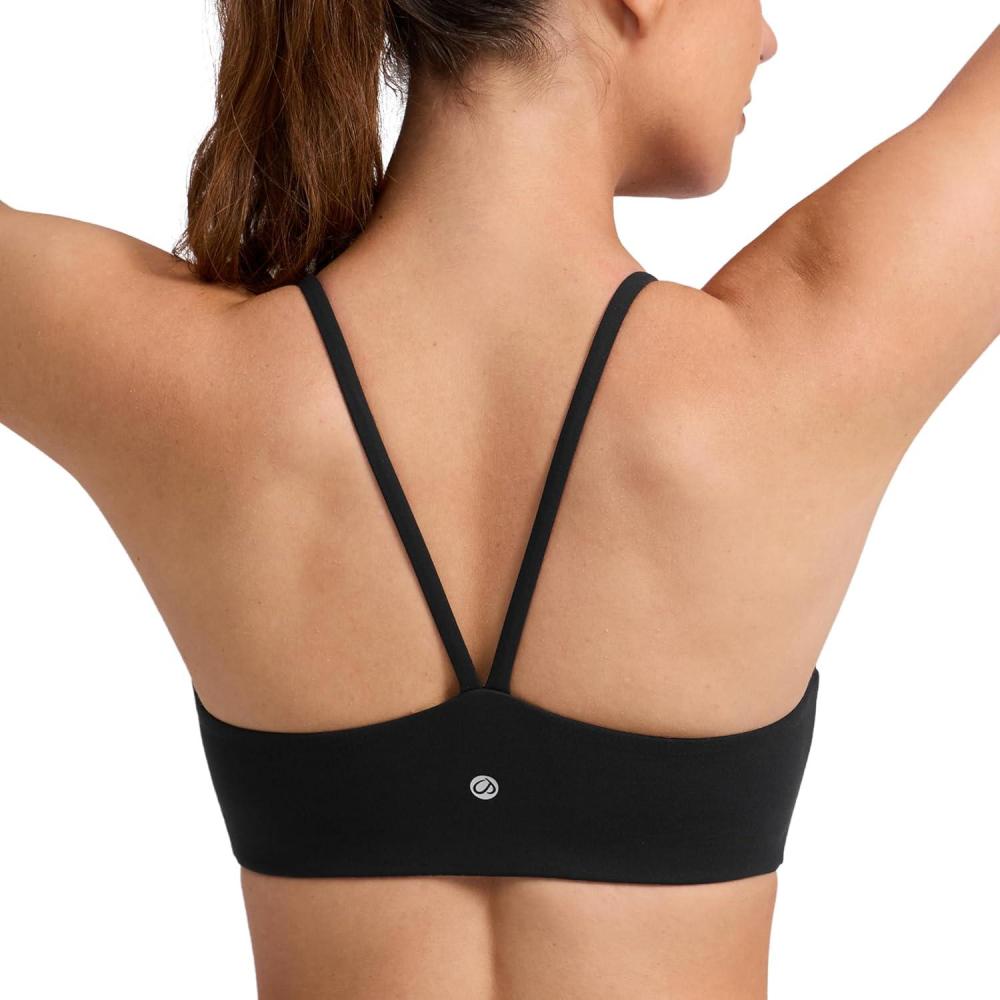 Be the first to review “CRZ YOGA Butterlift Double Lined V Back Sports Bras for Women – Scoop Neck Spaghetti Strap Wireless Yoga Top Non Padded(Black)”