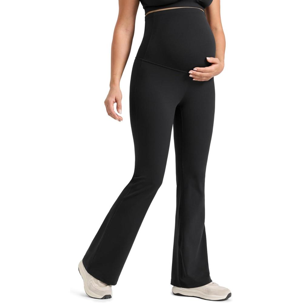 CRZ YOGA Butterlift Maternity Flare Leggings 31″ – Workout Yoga Lounge Bootcut Pregnancy Womens Pants Over The Belly(Black)