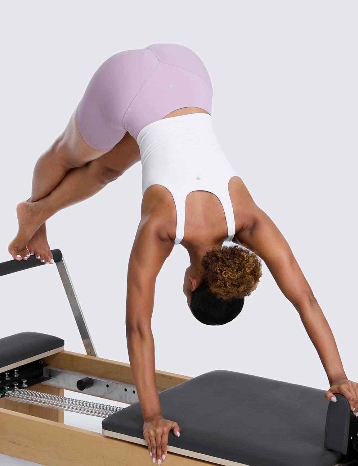 imageCRZ YOGA Butterlift Racerack Crop Tank Tops for Women  U Neck Yoga Padded Longline Sports Bras Pilates WorkoutWhite