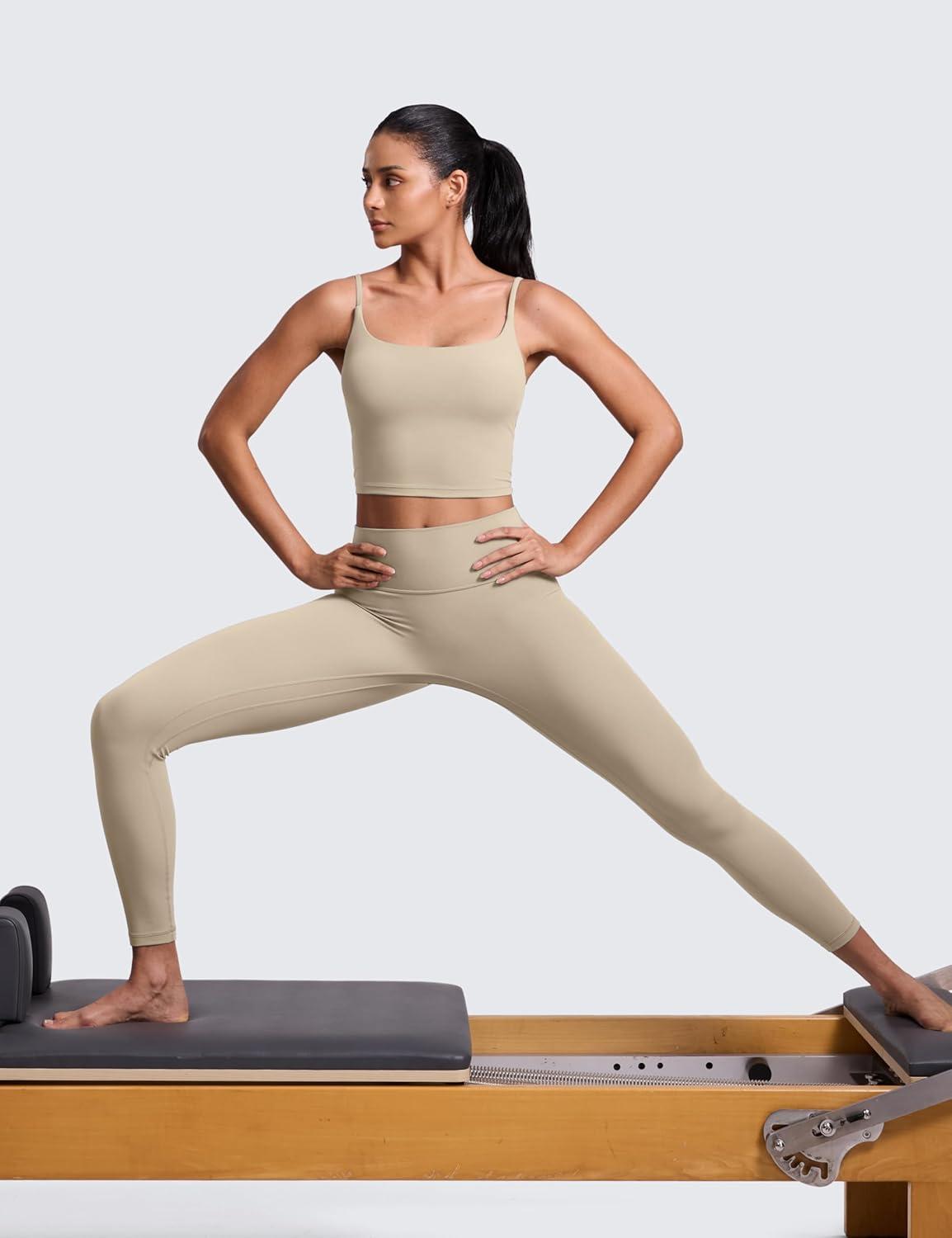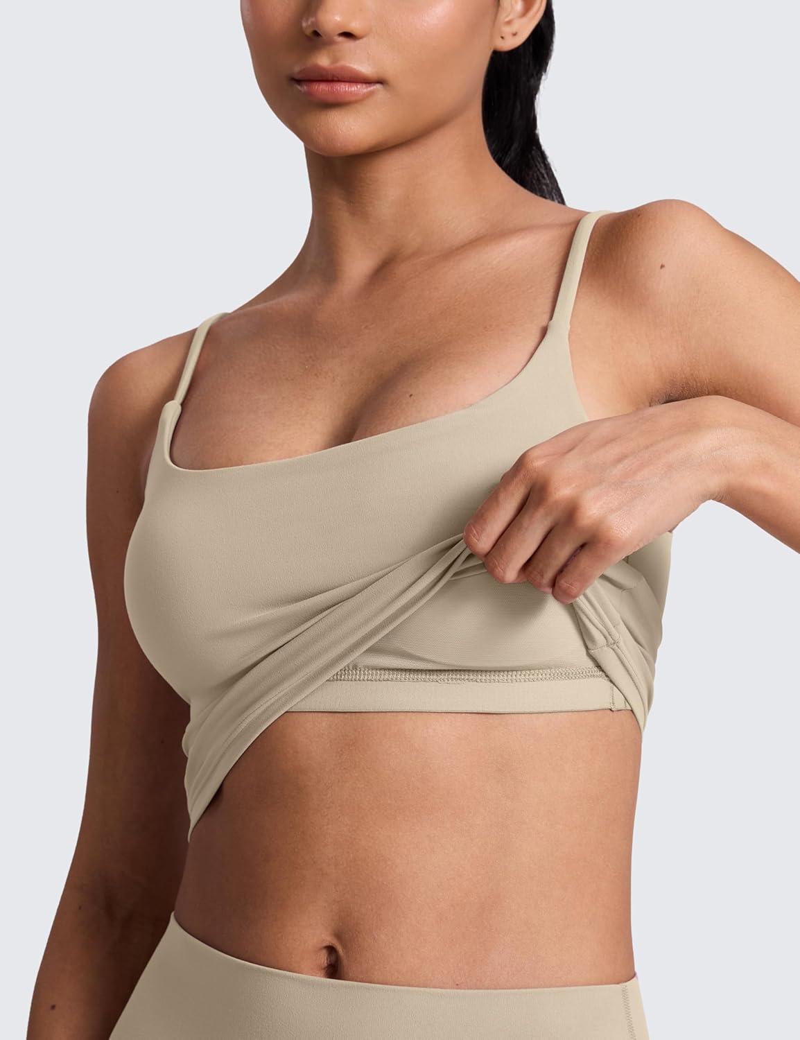 CRZ YOGA Butterlift Scoop Neck Crop Tank Tops for Women – Longline U Back Adjustable Straps Workout Sports Bras(Oak)