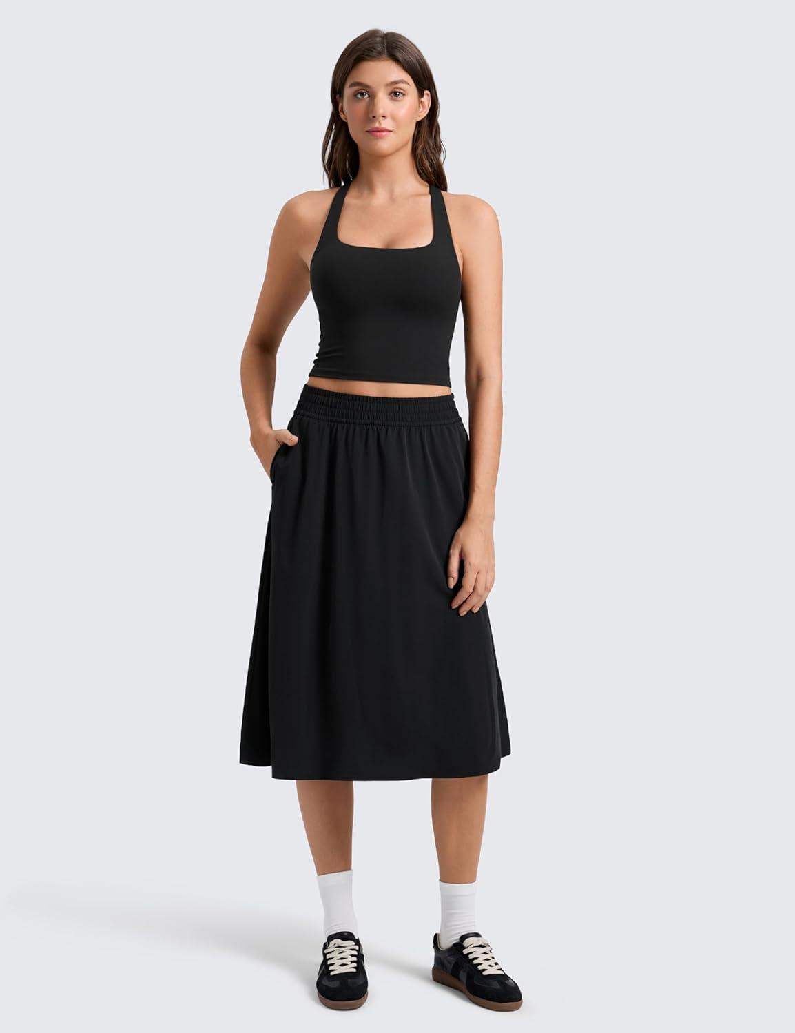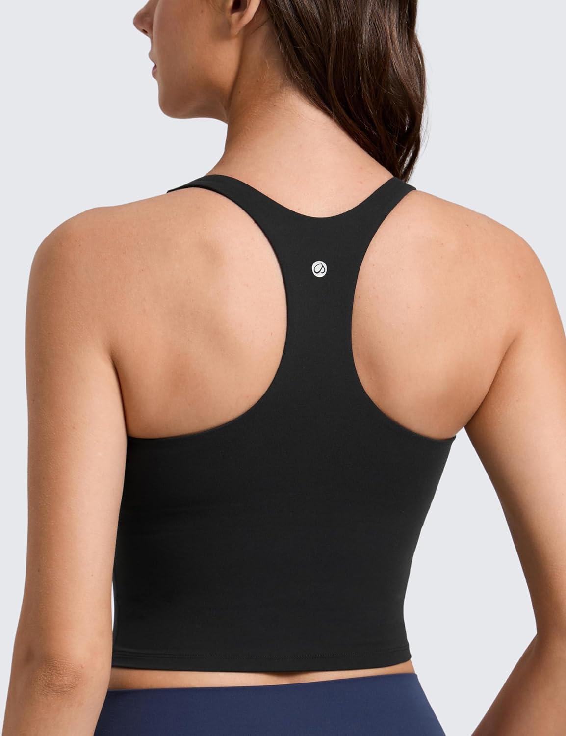 CRZ YOGA Butterlift Square Neck Crop Tank Tops for Women – Longline Racerback Sports Bras Yoga Cami Non Padded(Black)
