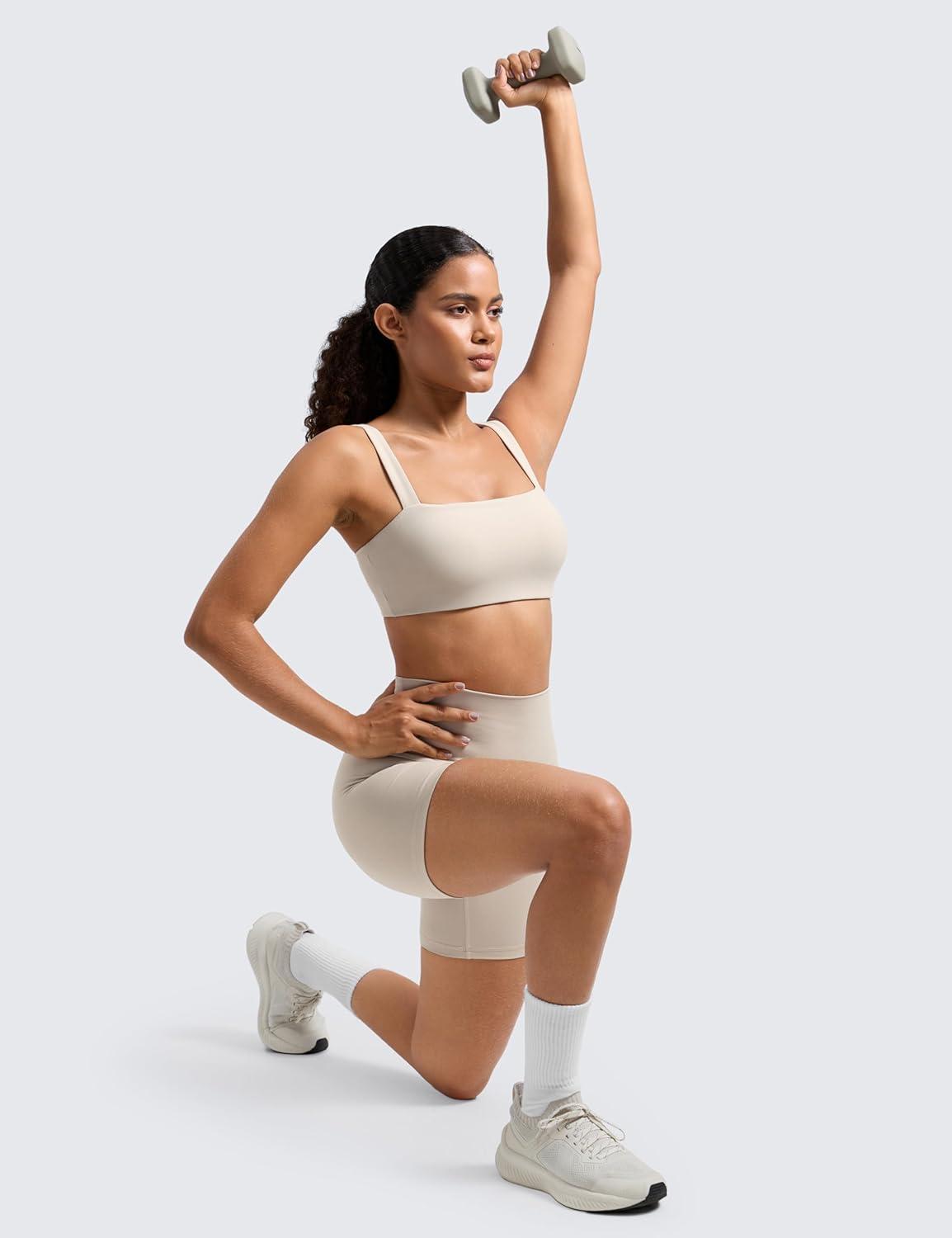CRZ YOGA Butterlift Square Neck Sports Bras for Women – Padded Supportive Wide Straps Yoga Workout Top(Mojave Tan)
