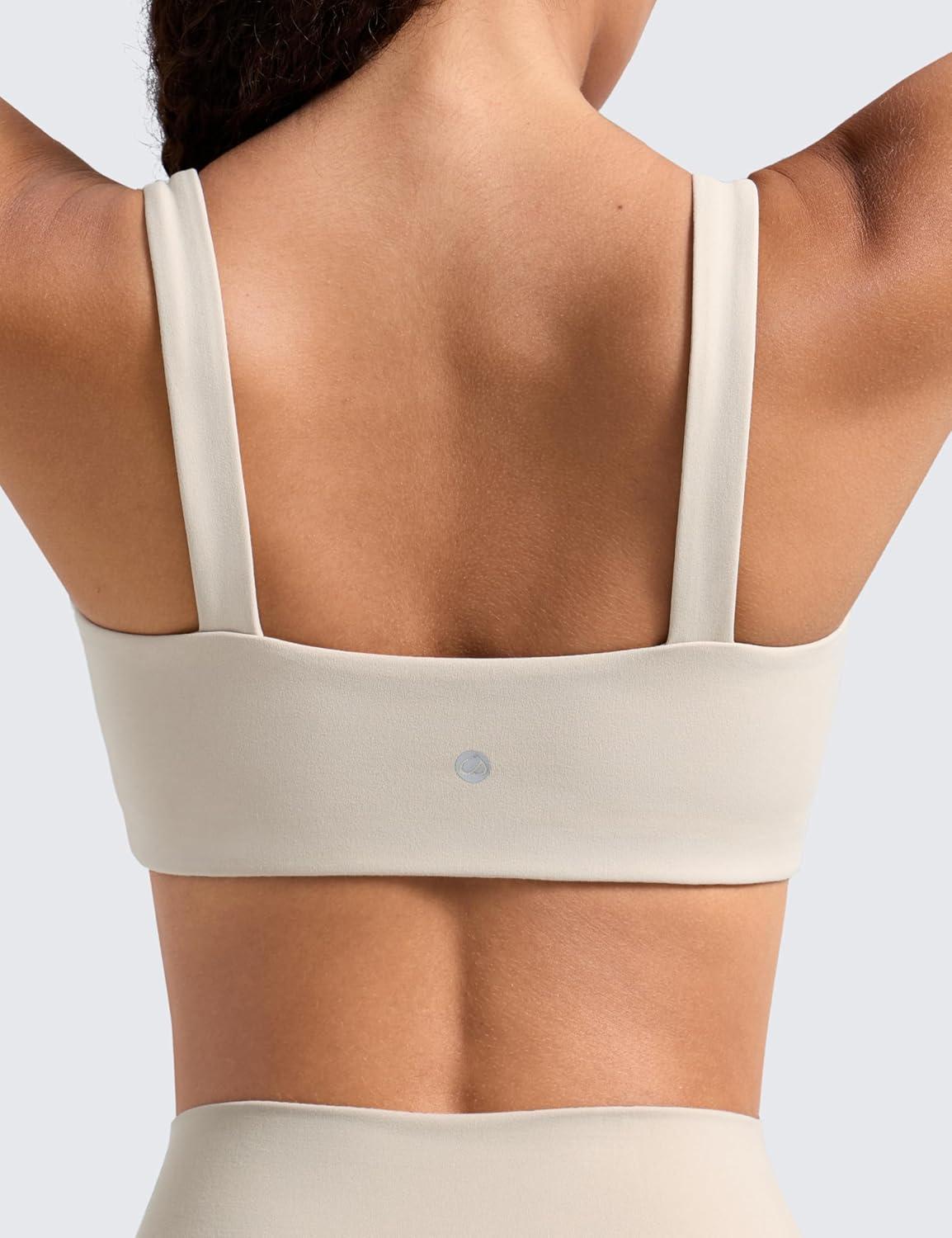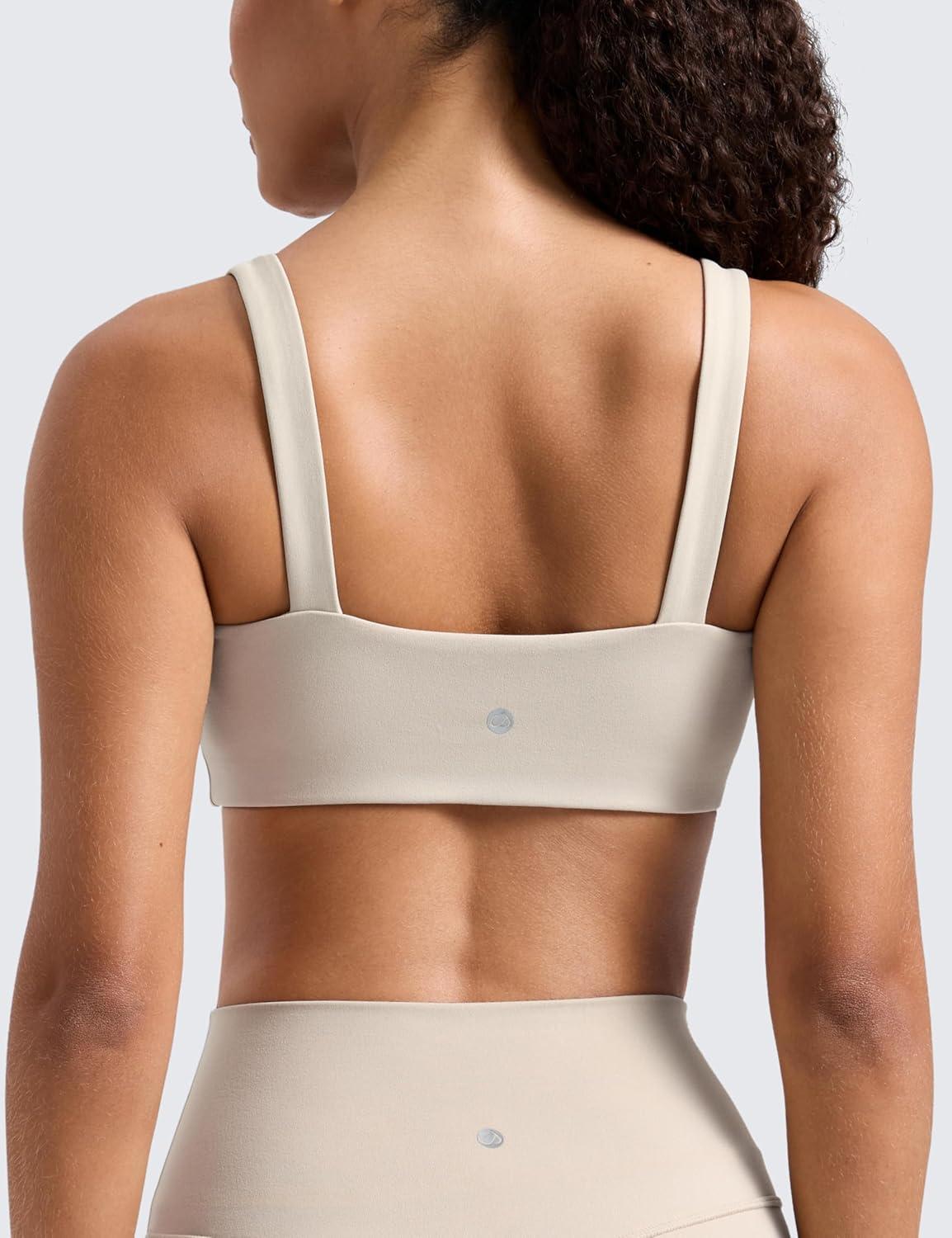 CRZ YOGA Butterlift Square Neck Sports Bras for Women - Padded Supportive Wide Straps Yoga Workout Top(Mojave Tan)