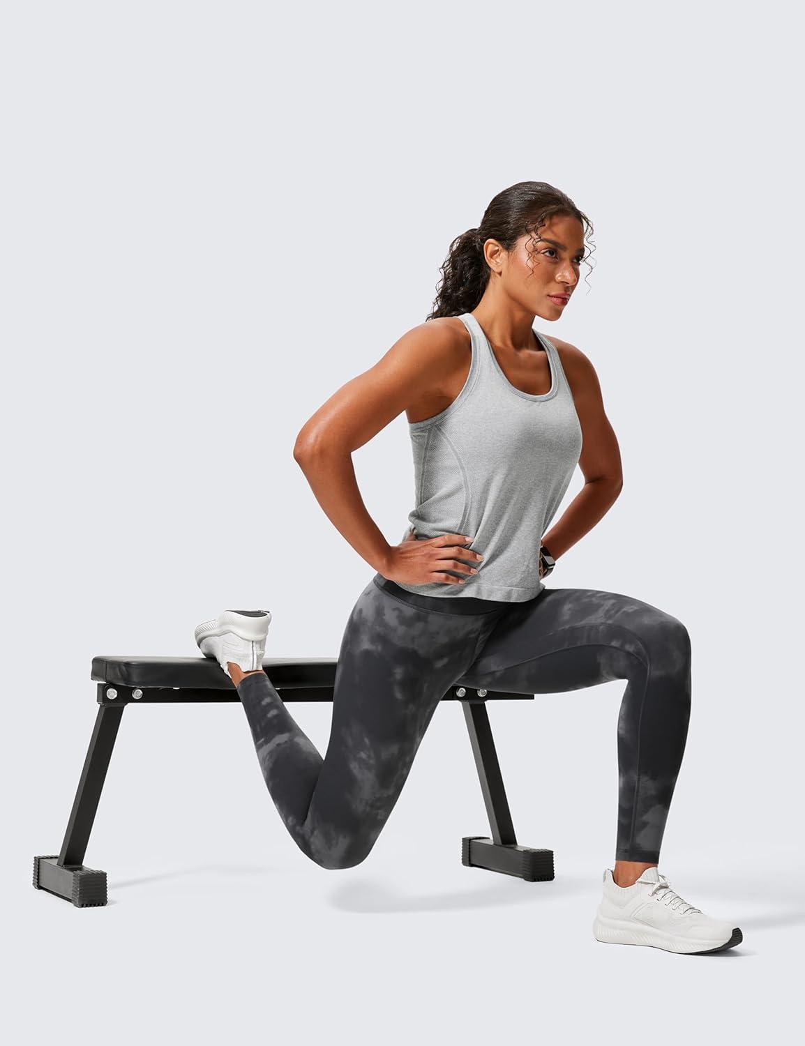 CRZ YOGA Butterlift Workout Leggings 28″ – High Waisted Pilates Gym Athletic Womens Yoga Pants Buttery Soft(Grey Tie Dye Flowers)