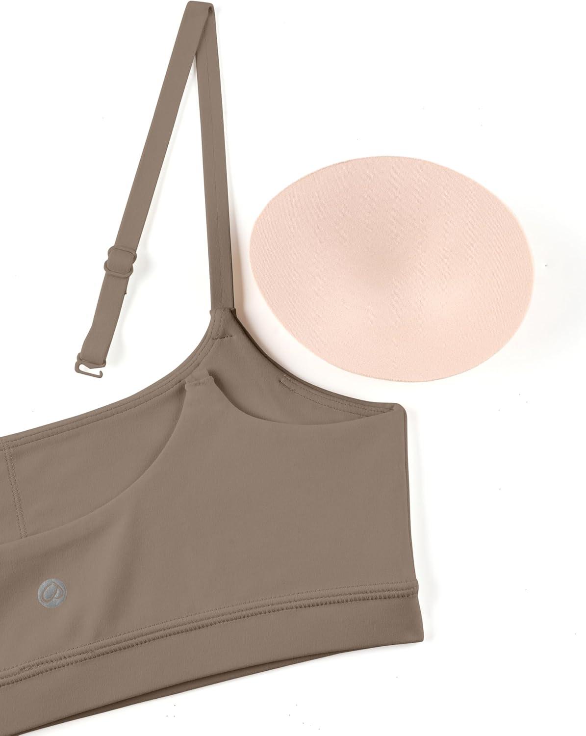 CRZ YOGA Butterluxe Adjustable Spaghetti Strap Sports Bras for Women – Scoop Neck Wireless Padded Yoga Workout Crop Top(Hot Fudge Brown)
