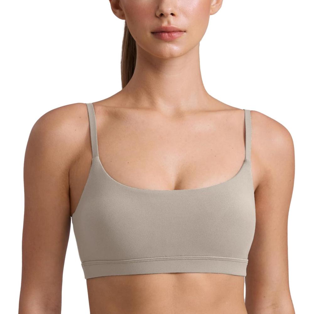 CRZ YOGA Butterluxe Adjustable Spaghetti Strap Sports Bras for Women – Scoop Neck Wireless Padded Yoga Workout Crop Top(Warm Ash Grey)
