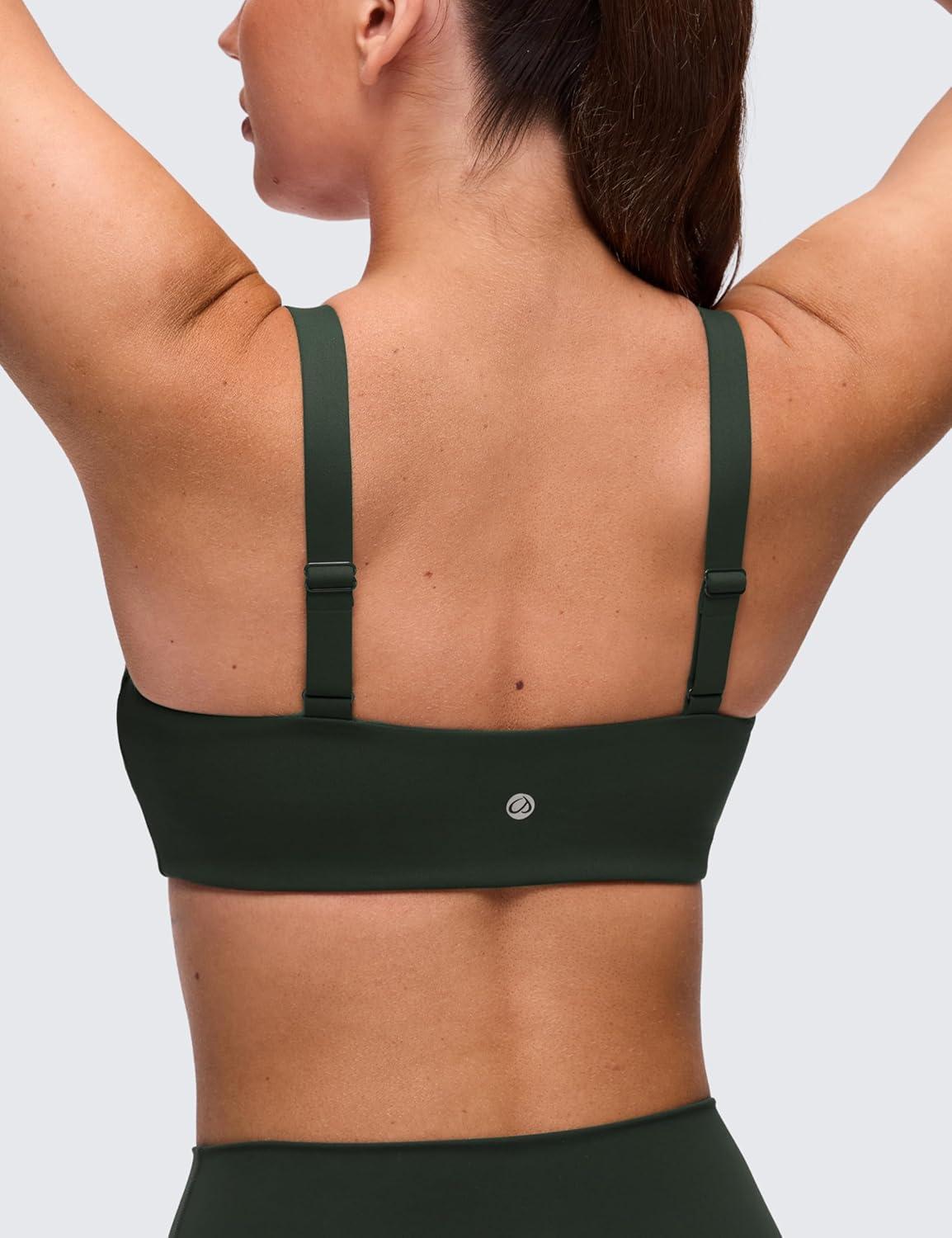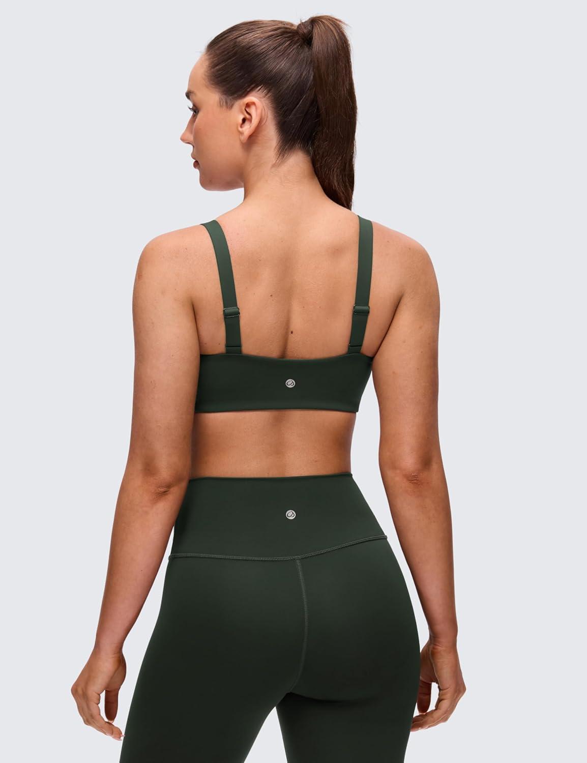 CRZ YOGA Butterluxe Adjustable Wide Strap Sports Bras for Women - Square Back Padded Scoop Neck Yoga Top(Legend Green)