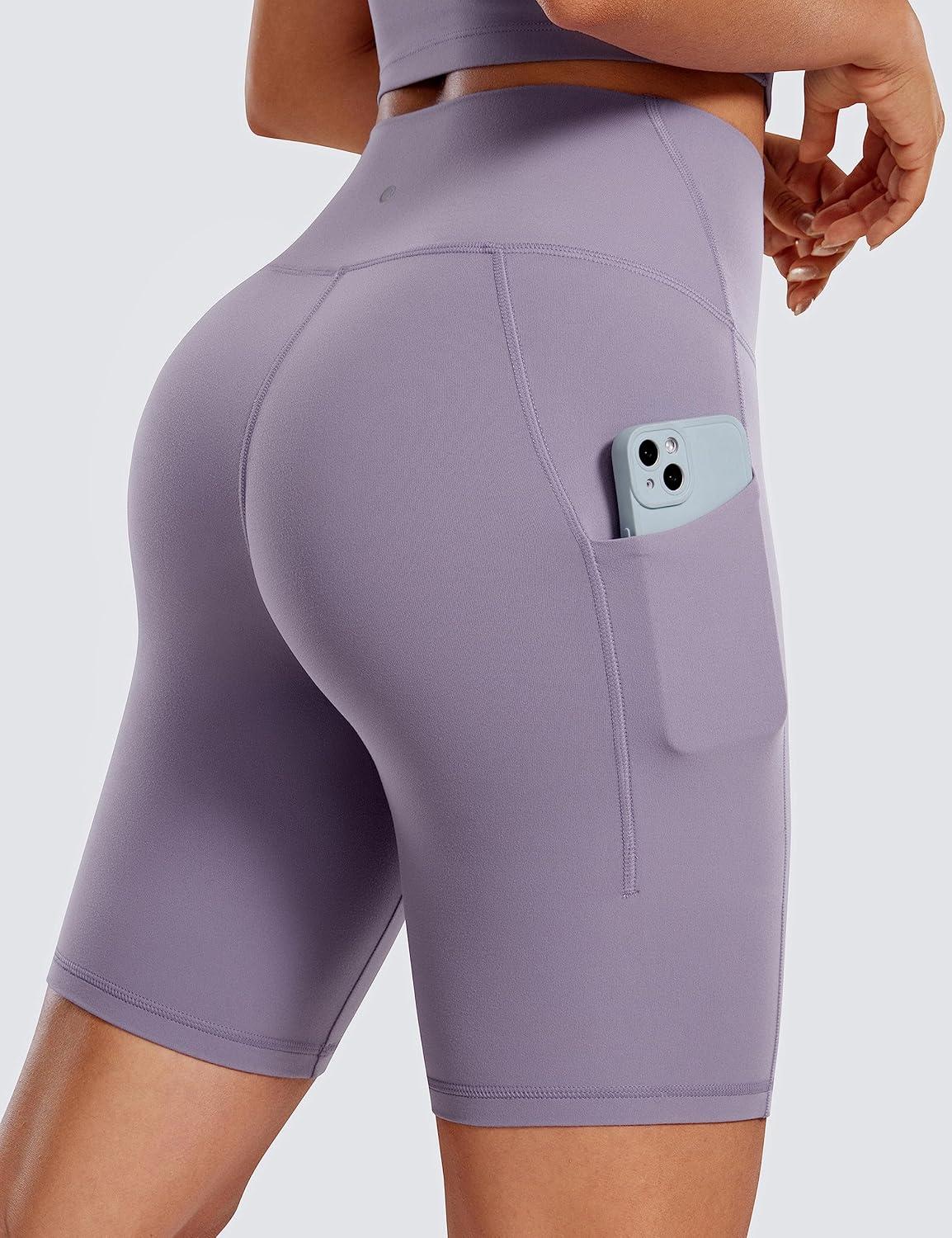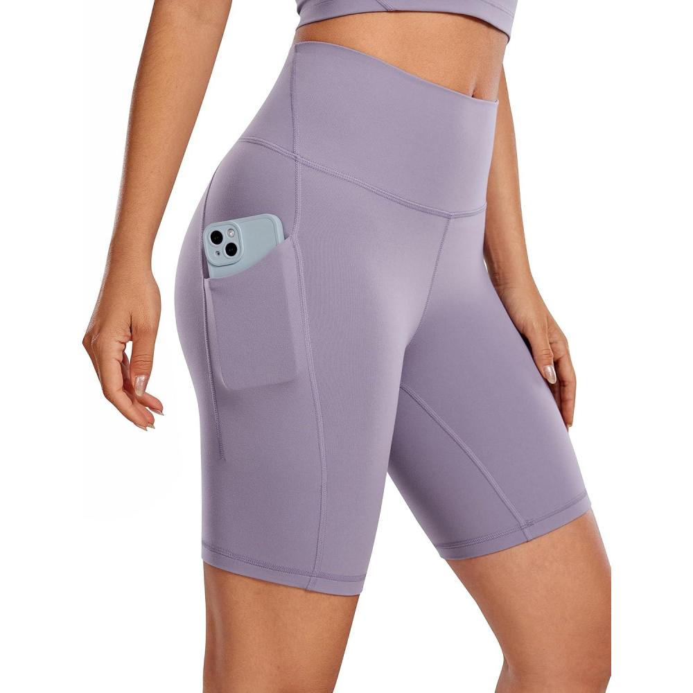 CRZ YOGA Butterluxe Biker Shorts Pockets 8″ – High Waisted Workout Yoga Volleyball Buttery Soft Womens(Lavender Mist)