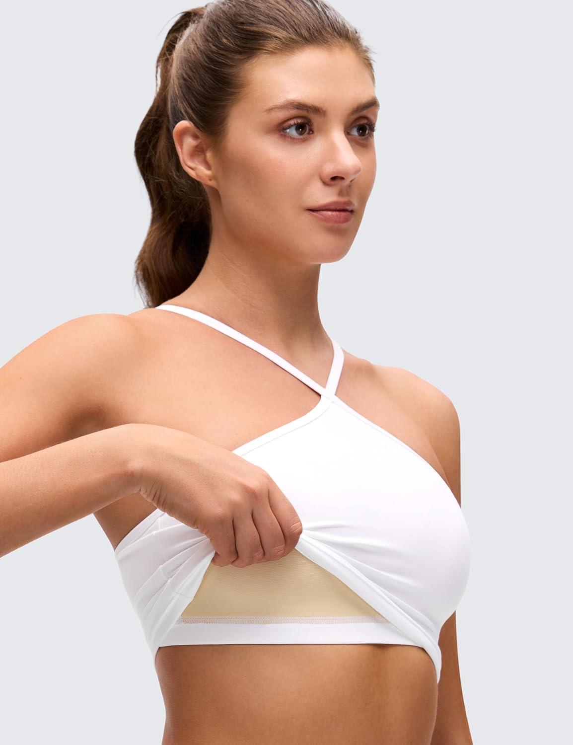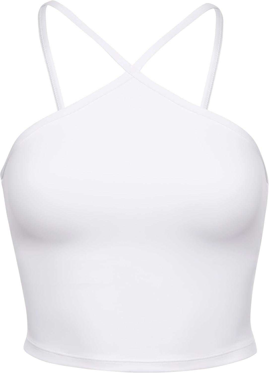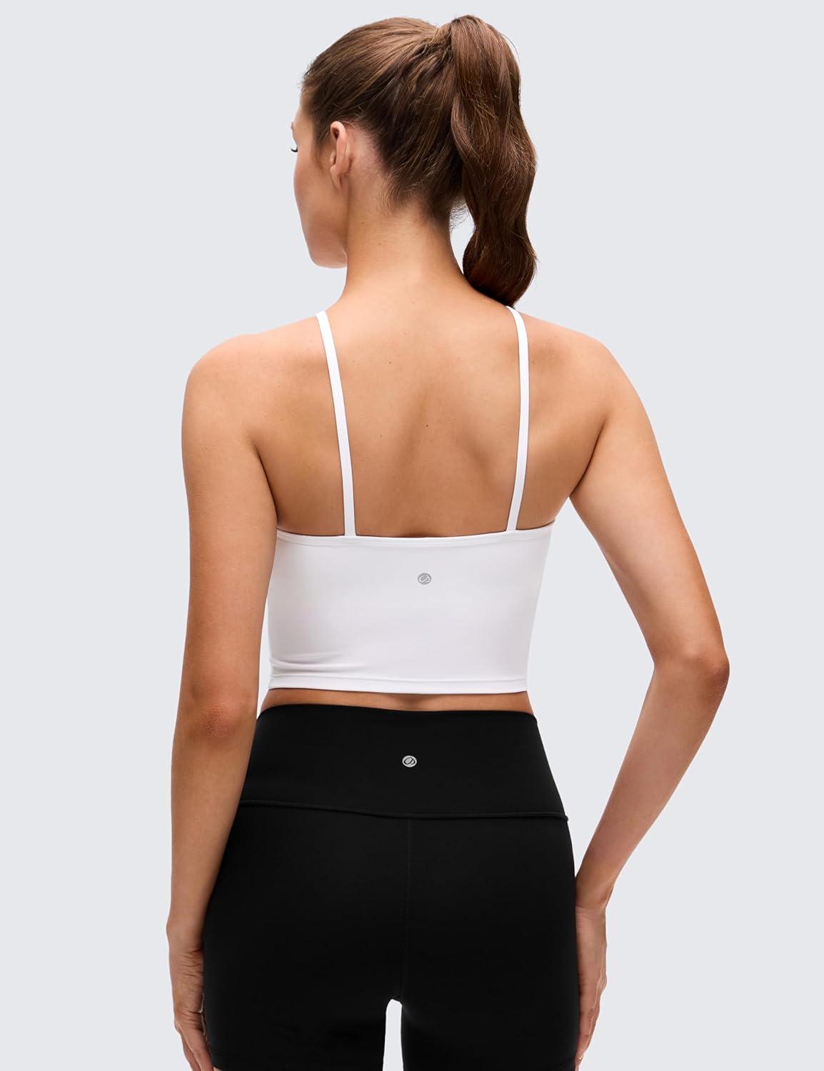 CRZ YOGA Butterluxe Cross Neck Crop Tank Tops for Women – Spaghetti Straps Square Back Padded Yoga Sports Bras(White)