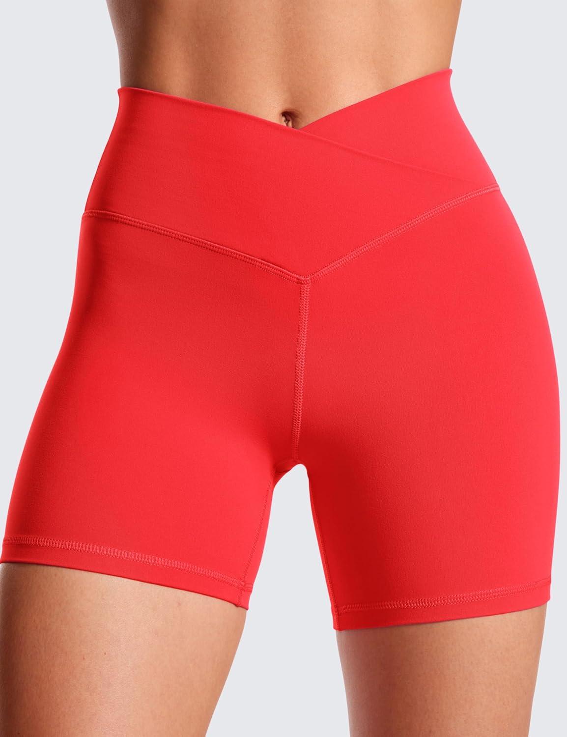 CRZ YOGA Butterluxe Crossover Biker Shorts 5" - Criss Cross High Waisted Workout Yoga Buttery Soft Womens(Deep Red)