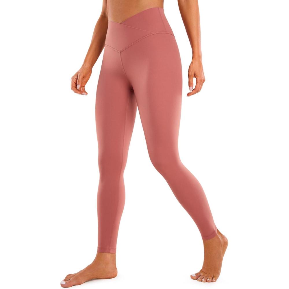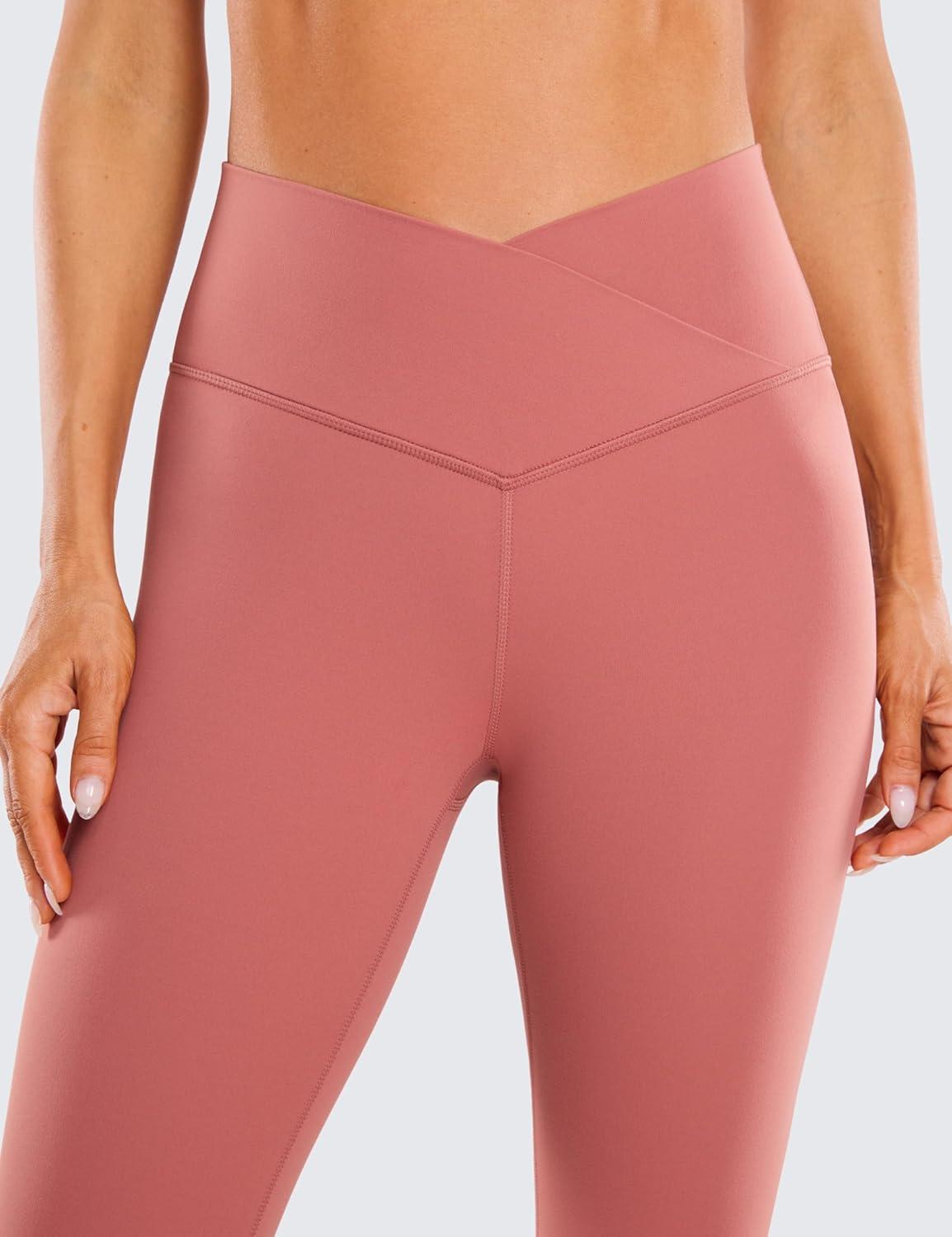 CRZ YOGA Butterluxe Crossover Waist Leggings 28″ – Criss Cross Full Length Workout Athletic Womens Yoga Pants(Briar Rose)