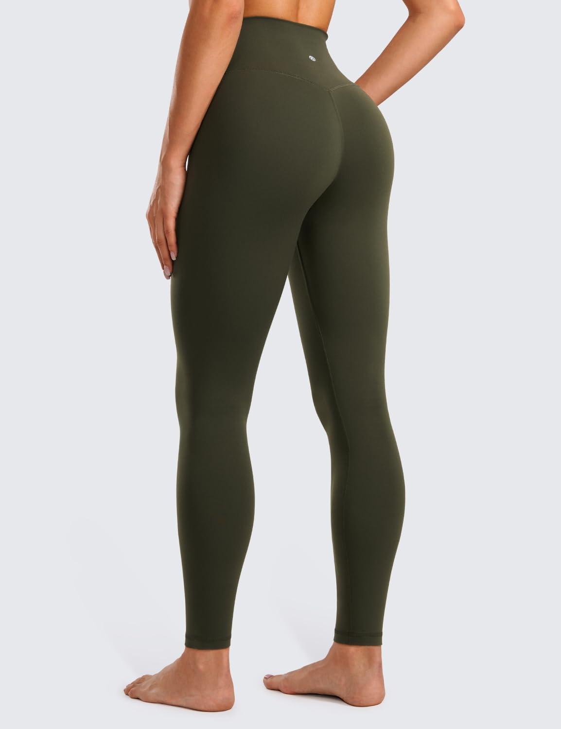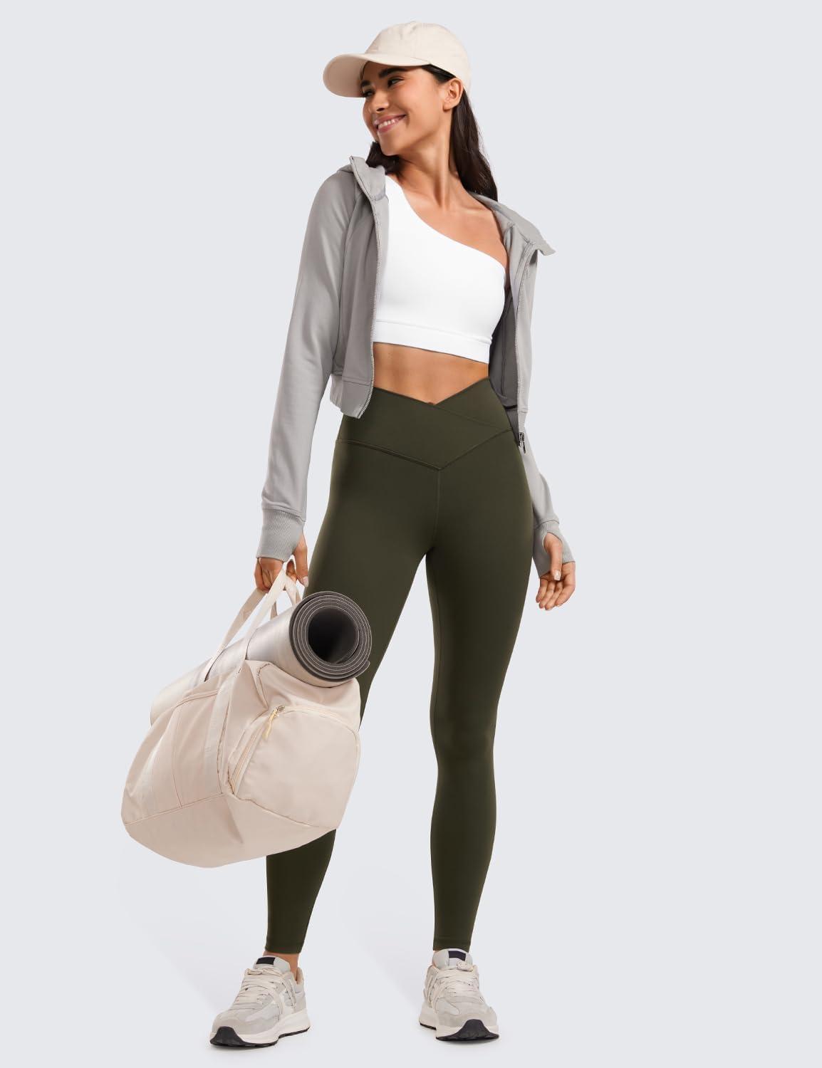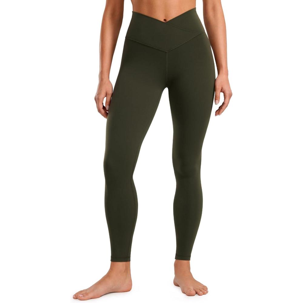 CRZ YOGA Butterluxe Crossover Waist Leggings 28″ – Criss Cross Full Length Workout Athletic Womens Yoga Pants(Olive Green)
