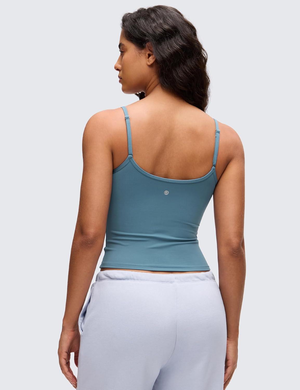 CRZ YOGA Butterluxe Double Lined Cami Tank Tops for Women – Yoga Casual Going Out Soft Scoop Neck Summer Sleeveless Shirt(Blue Ashes)
