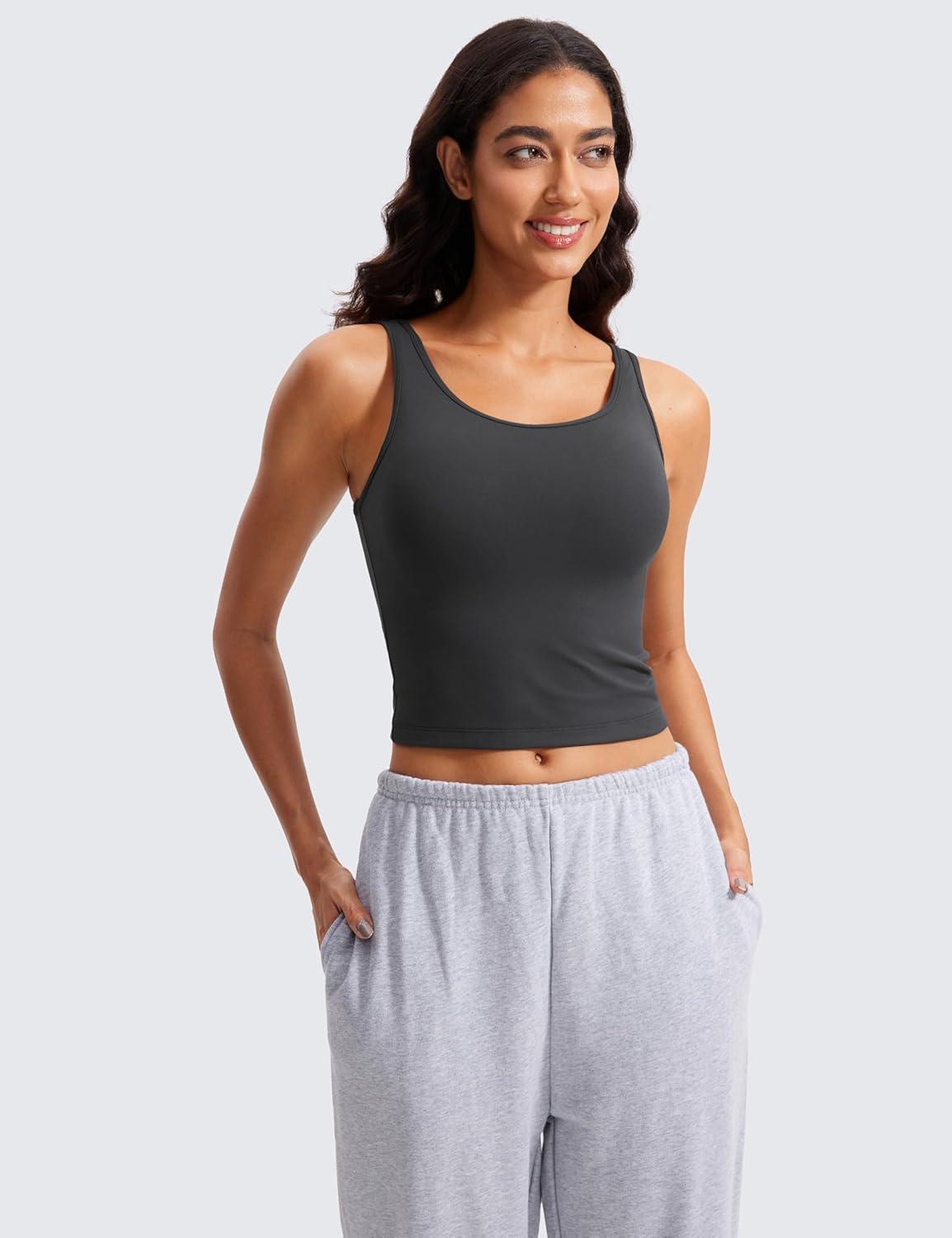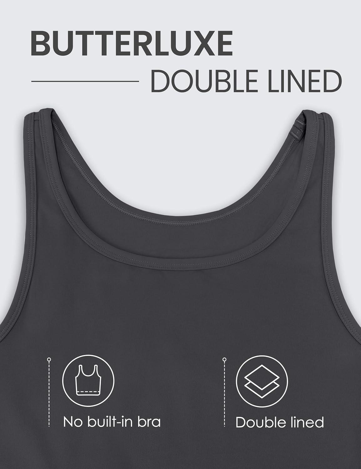 CRZ YOGA Butterluxe Double Lined Tank Tops for Women – Workout Casual Scoop Neck Racerback Crop Sleeveless Shirt(Mysterious Grey)