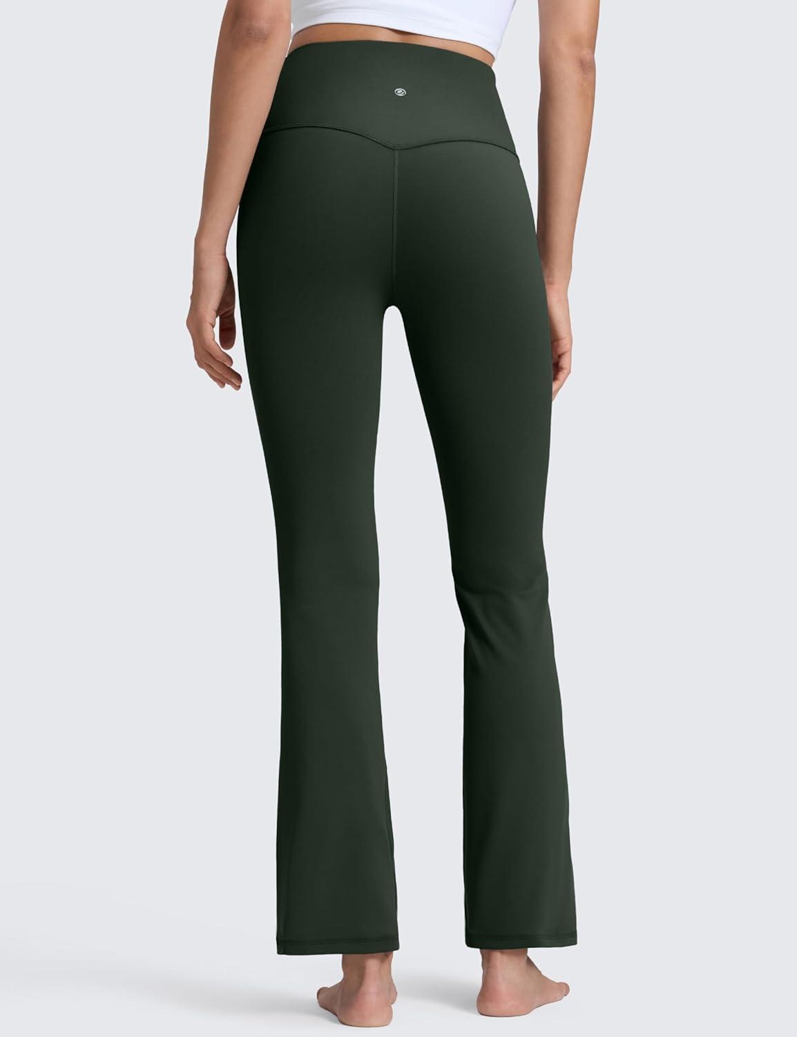 CRZ YOGA Butterluxe Flare Leggings 29″/30.5″/32″/33.5″ – High Waist Bootcut Wide Leg Lounge Womens Yoga Pants with Pocket(Legend Green)