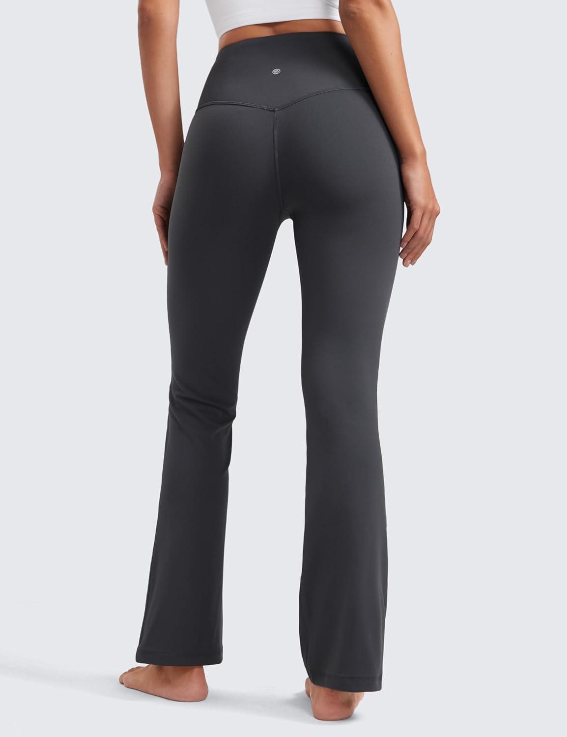 CRZ YOGA Butterluxe Flare Leggings 29″/30.5″/32″/33.5″ – High Waist Bootcut Wide Leg Lounge Womens Yoga Pants with Pocket(Mysterious Grey)