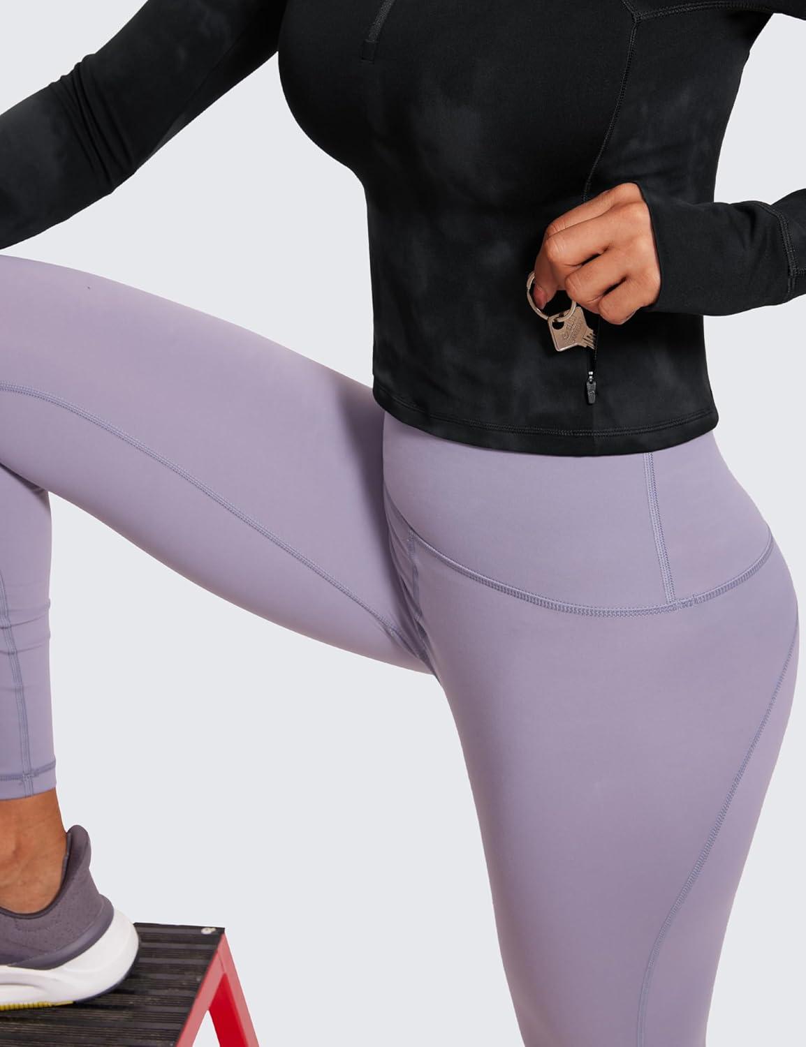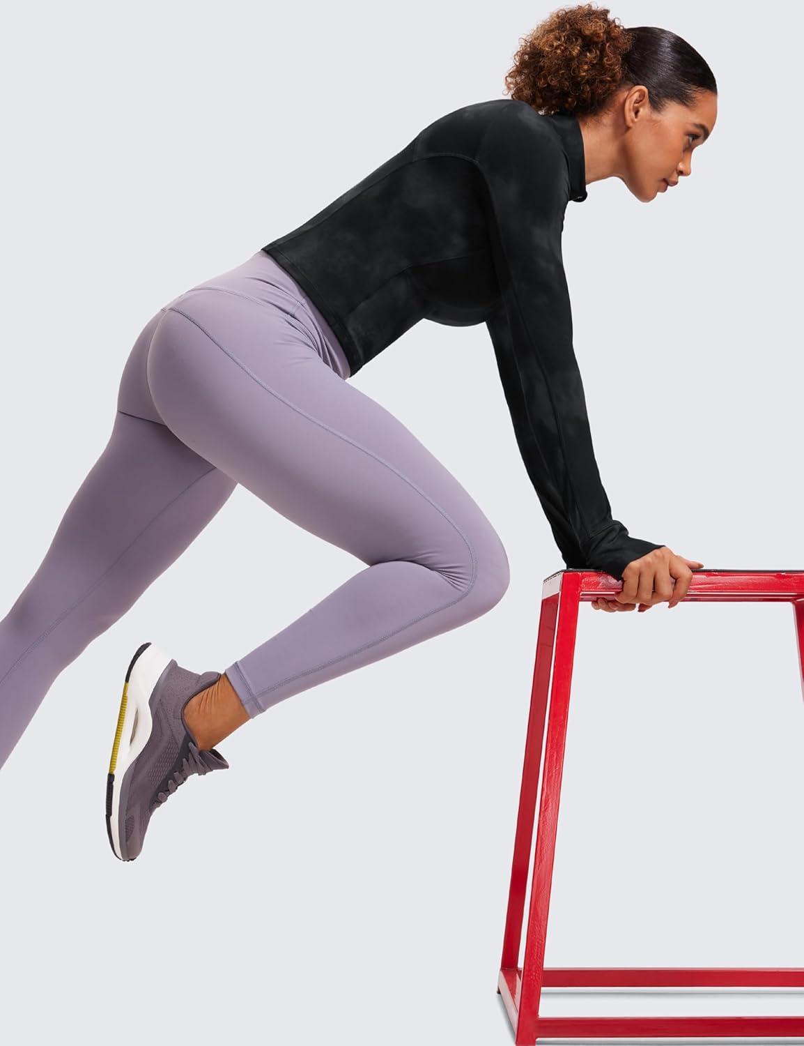 CRZ YOGA Butterluxe Half Zip Long Sleeve Shirts for Women – Workout Athletic Yoga Tops Crop Collared Quarter Zipper T-Shirt(Blue Ashes)