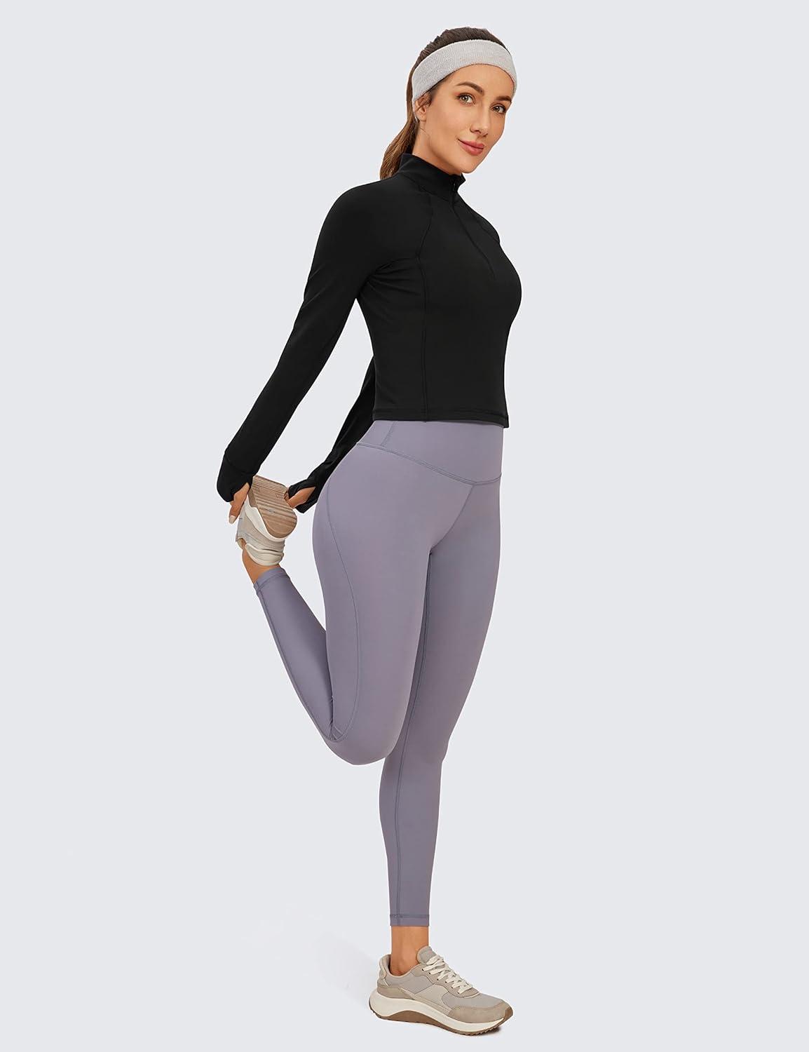 CRZ YOGA Butterluxe Half Zip Long Sleeve Shirts for Women – Workout Athletic Yoga Tops Crop Collared Quarter Zipper T-Shirt(Black)