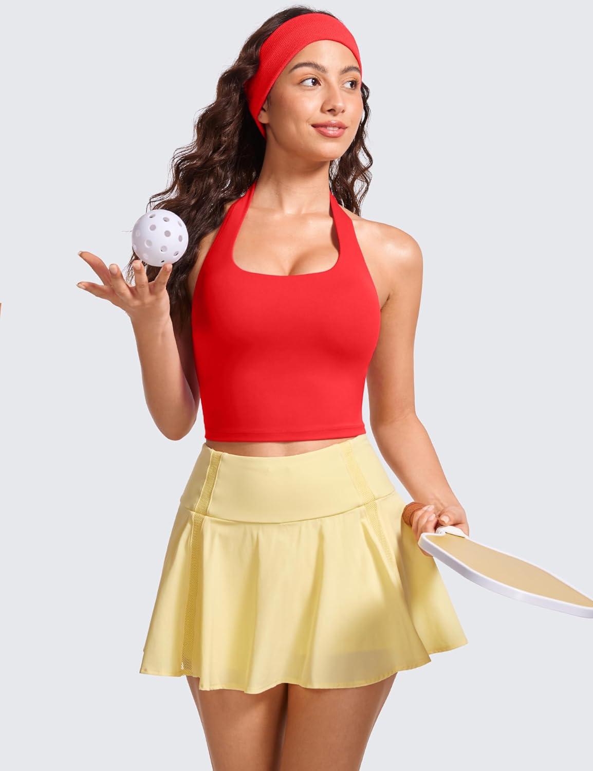 imageCRZ YOGA Butterluxe Halter Crop Tank Tops for Women  Open Back Padded Longline Sports Bras Workout GymDeep Red