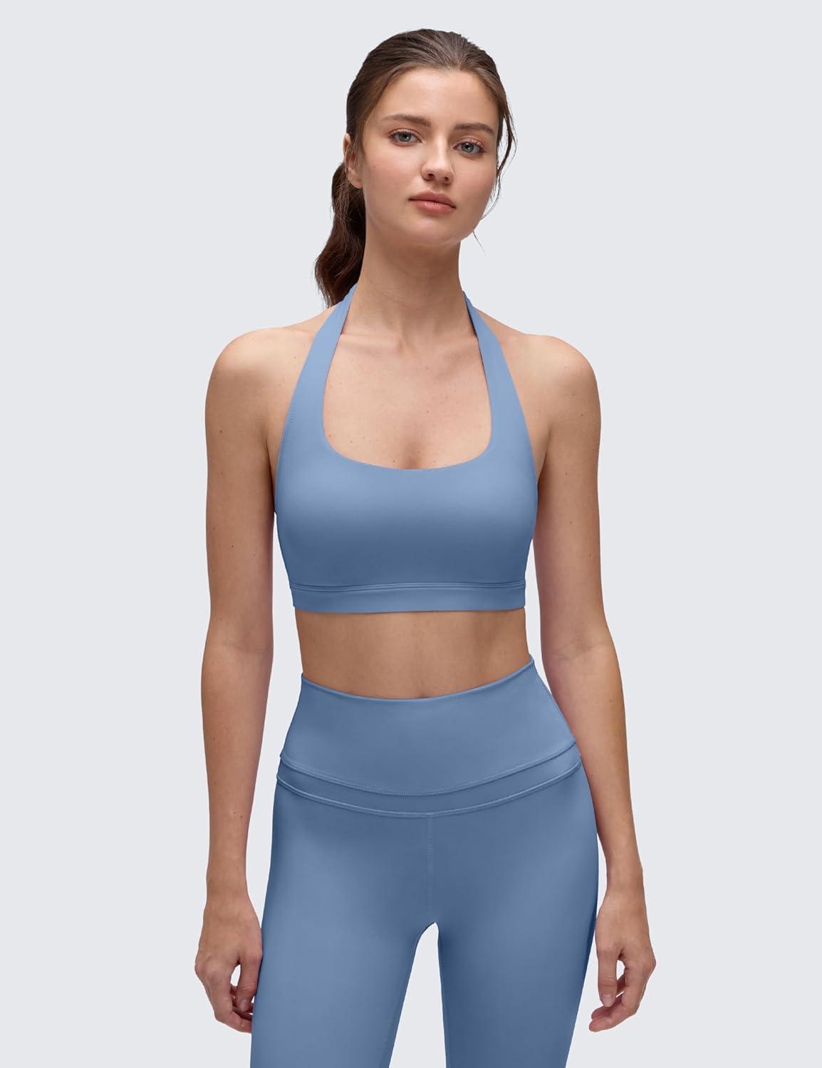 Butterluxe collection features super soft and stretchy high-quality fabric. Removable pads for convenient adjustment. Basic halter sports bra with a backless design that showcases your attractive backline for a stylish look.
