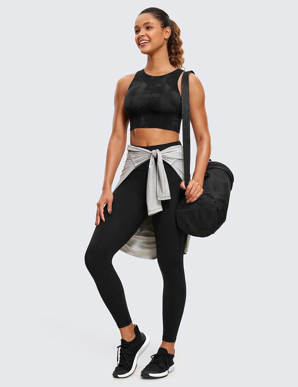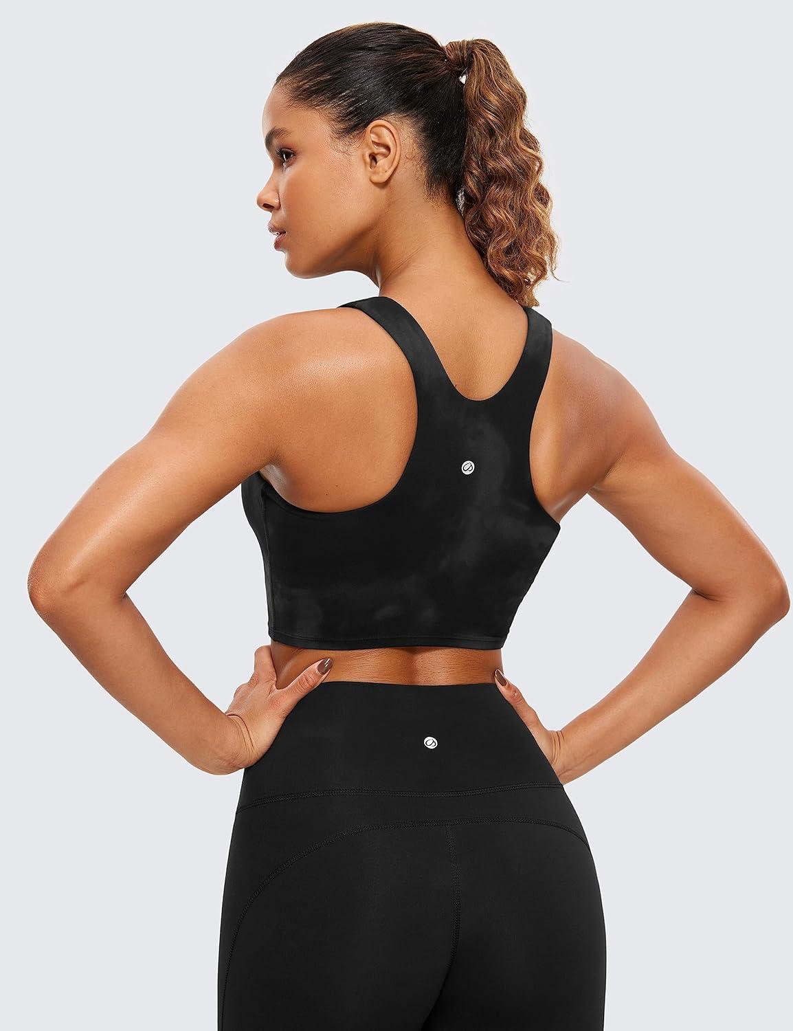 CRZ YOGA Butterluxe High Neck Crop Tank Tops for Women – Racerback Padded Longline Sports Bras Workout(Black Tie Dye Flowers)