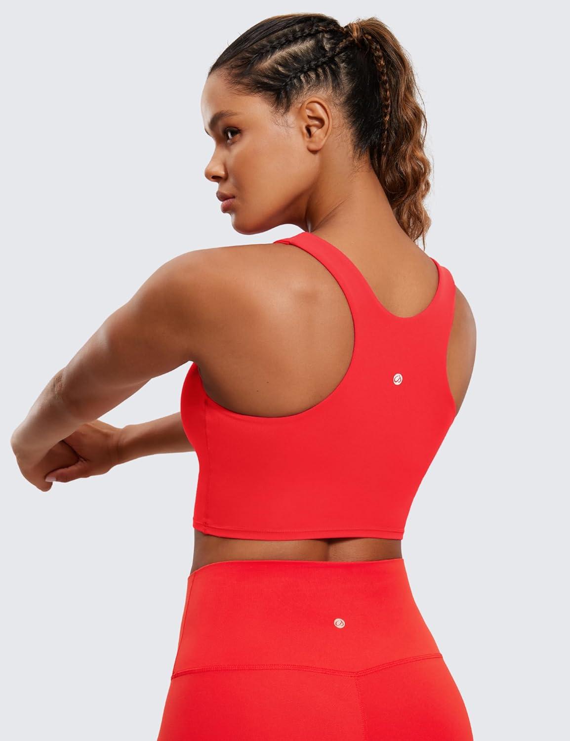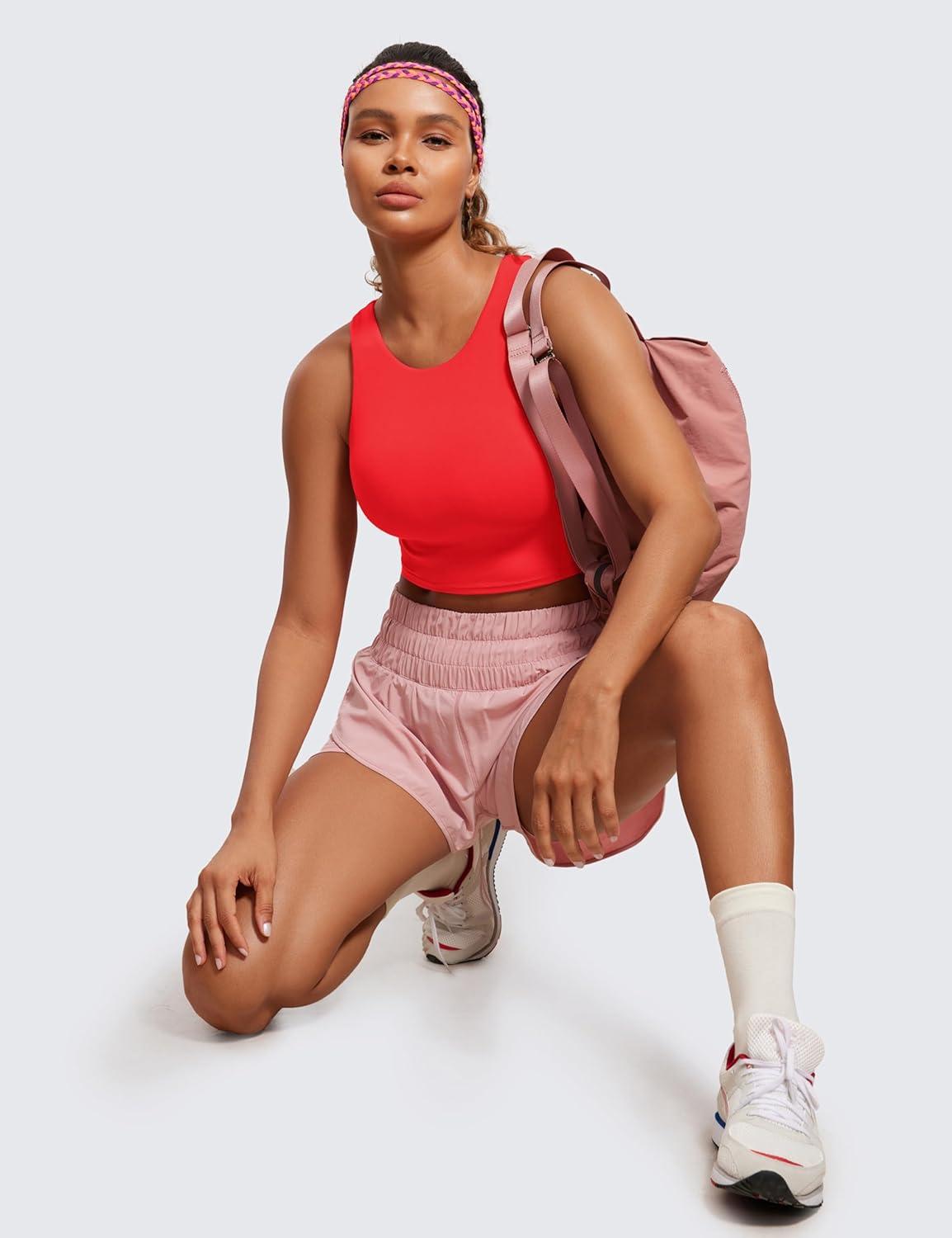 imageCRZ YOGA Butterluxe High Neck Crop Tank Tops for Women  Racerback Padded Longline Sports Bras WorkoutDeep Red