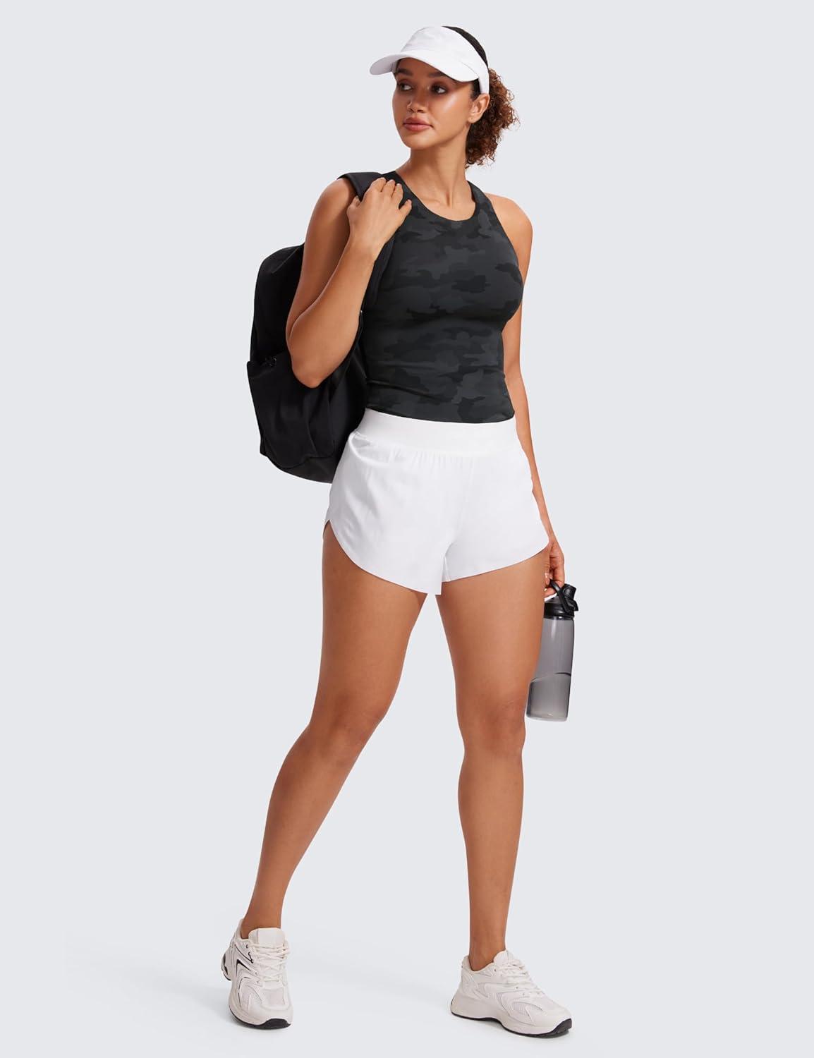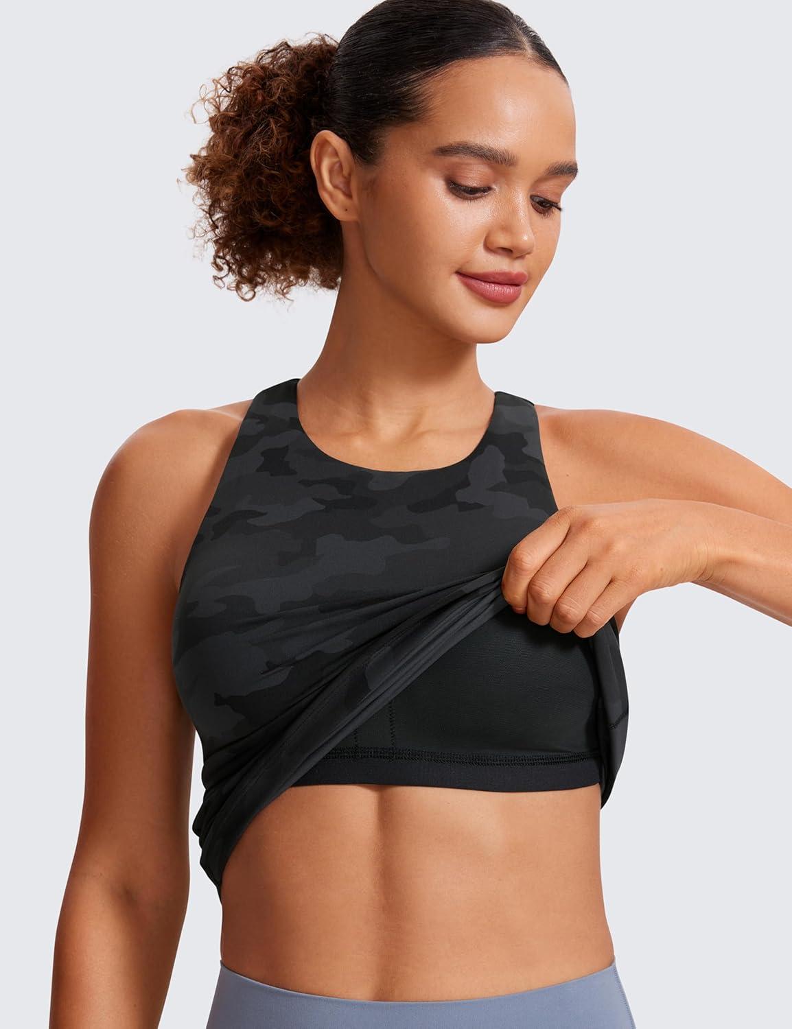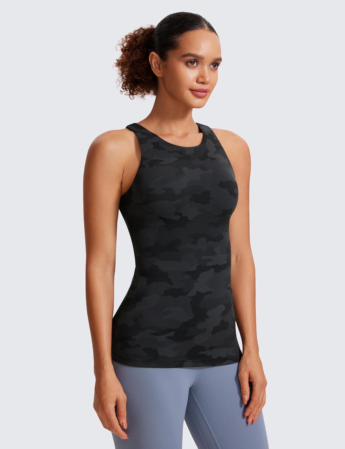 CRZ YOGA Butterluxe High Neck Tank Tops for Women – Racerback Workout Padded Yoga Athletic Camisole with Built in Bra(Dark Grey Camouflage 2)