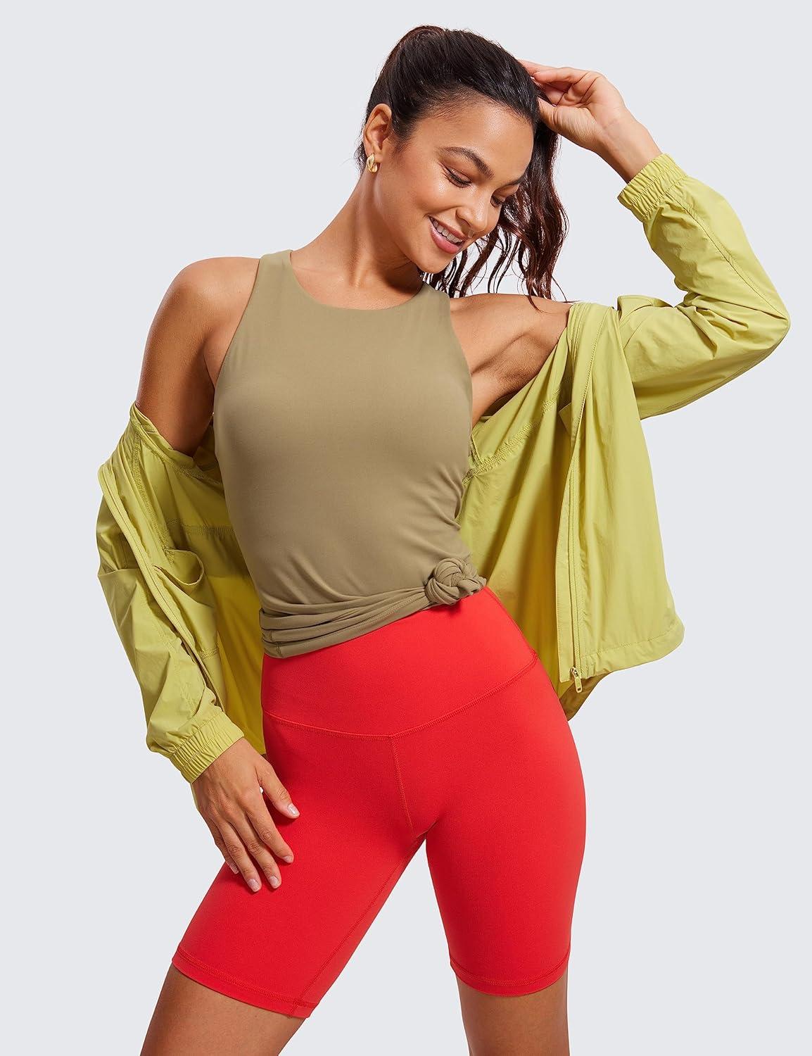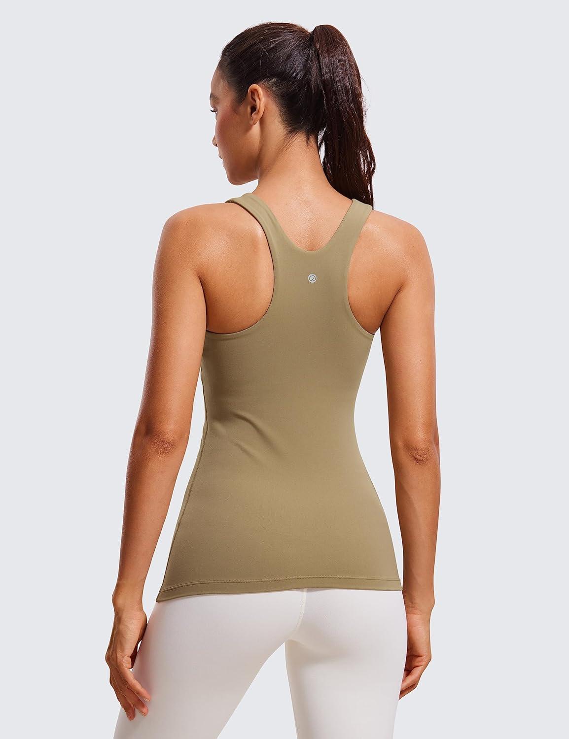 CRZ YOGA Butterluxe High Neck Tank Tops for Women – Racerback Workout Padded Yoga Athletic Camisole with Built in Bra(Soul Brown)