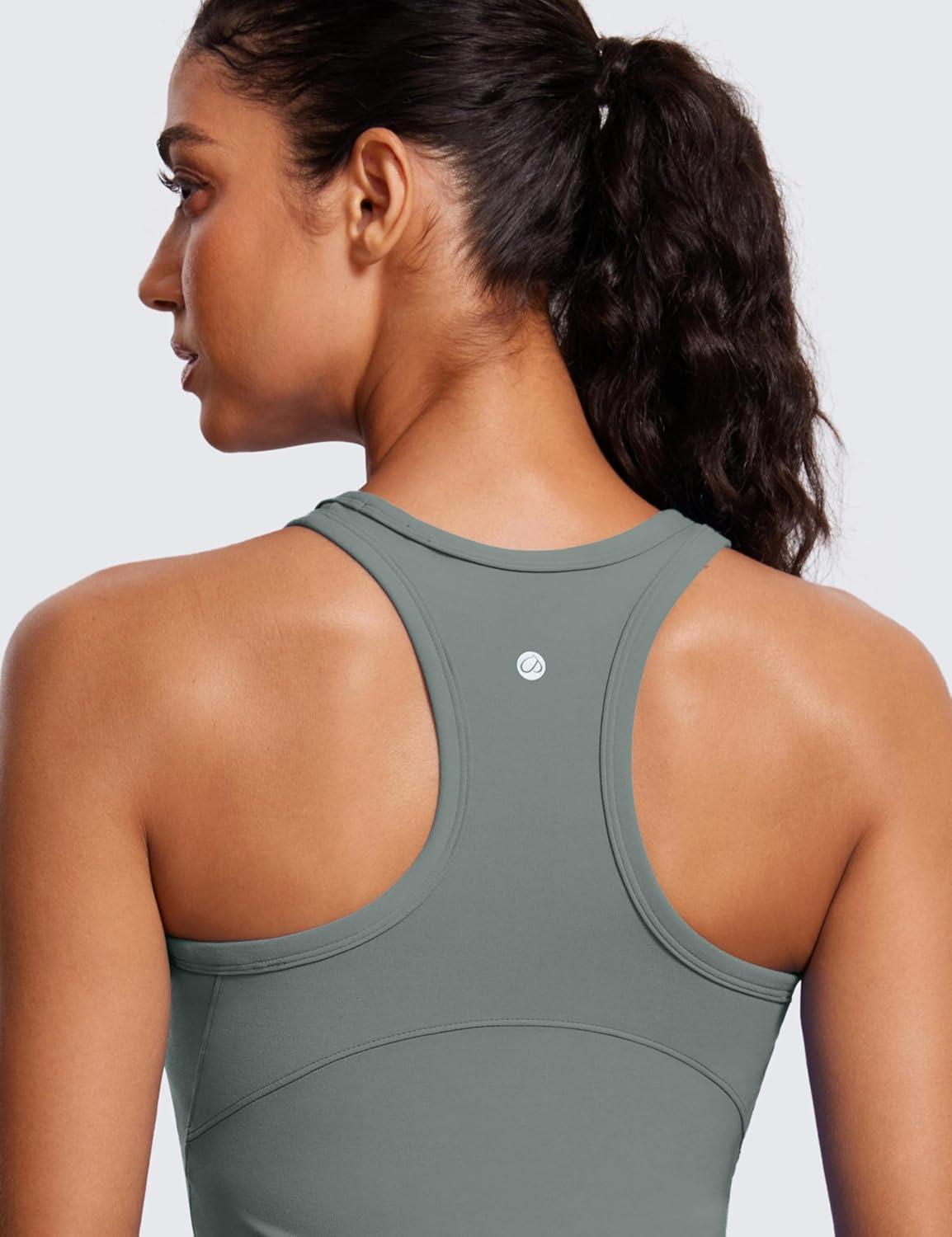 CRZ YOGA Butterluxe High Neck Tank Tops for Women – Yoga Workout Athletic Gym Camisole Racerback Sleeveless Shirts(Grey Sage)
