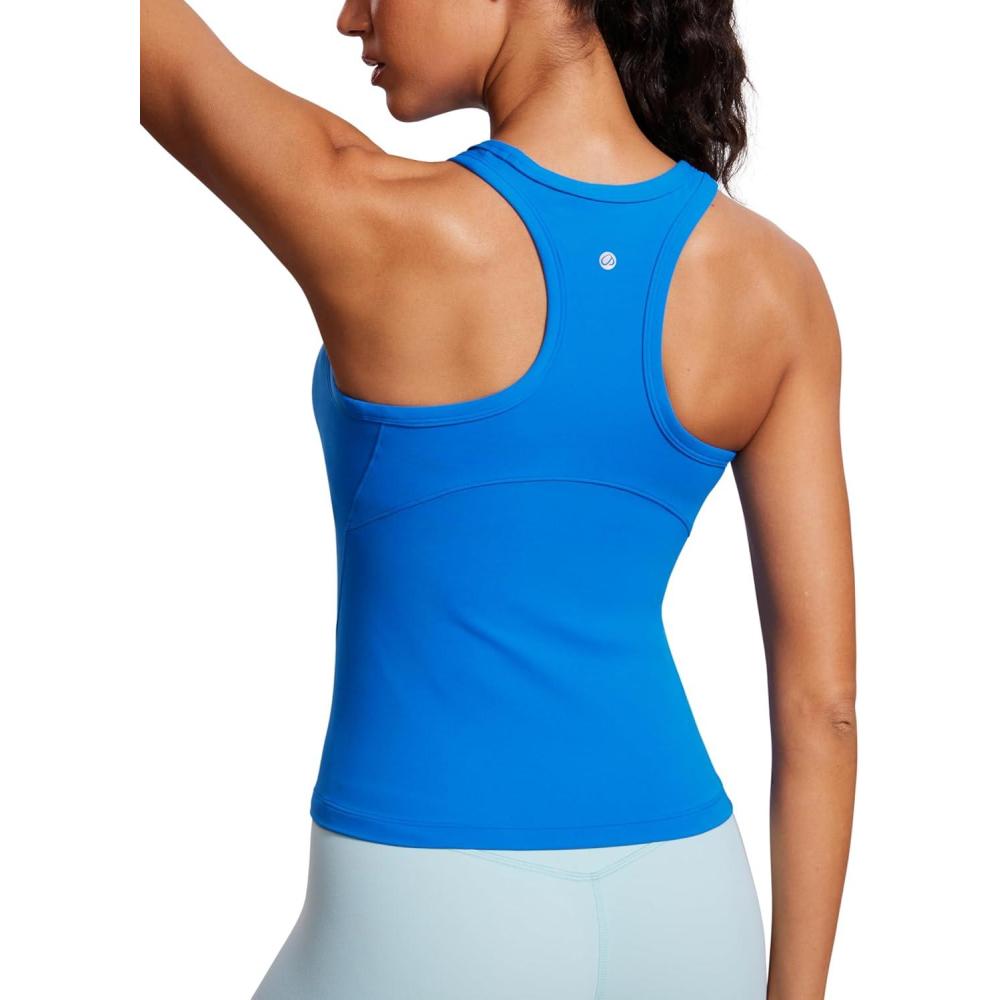 CRZ YOGA Butterluxe High Neck Tank Tops for Women – Yoga Workout Athletic Gym Camisole Racerback Sleeveless Shirts(Oasis Blue)