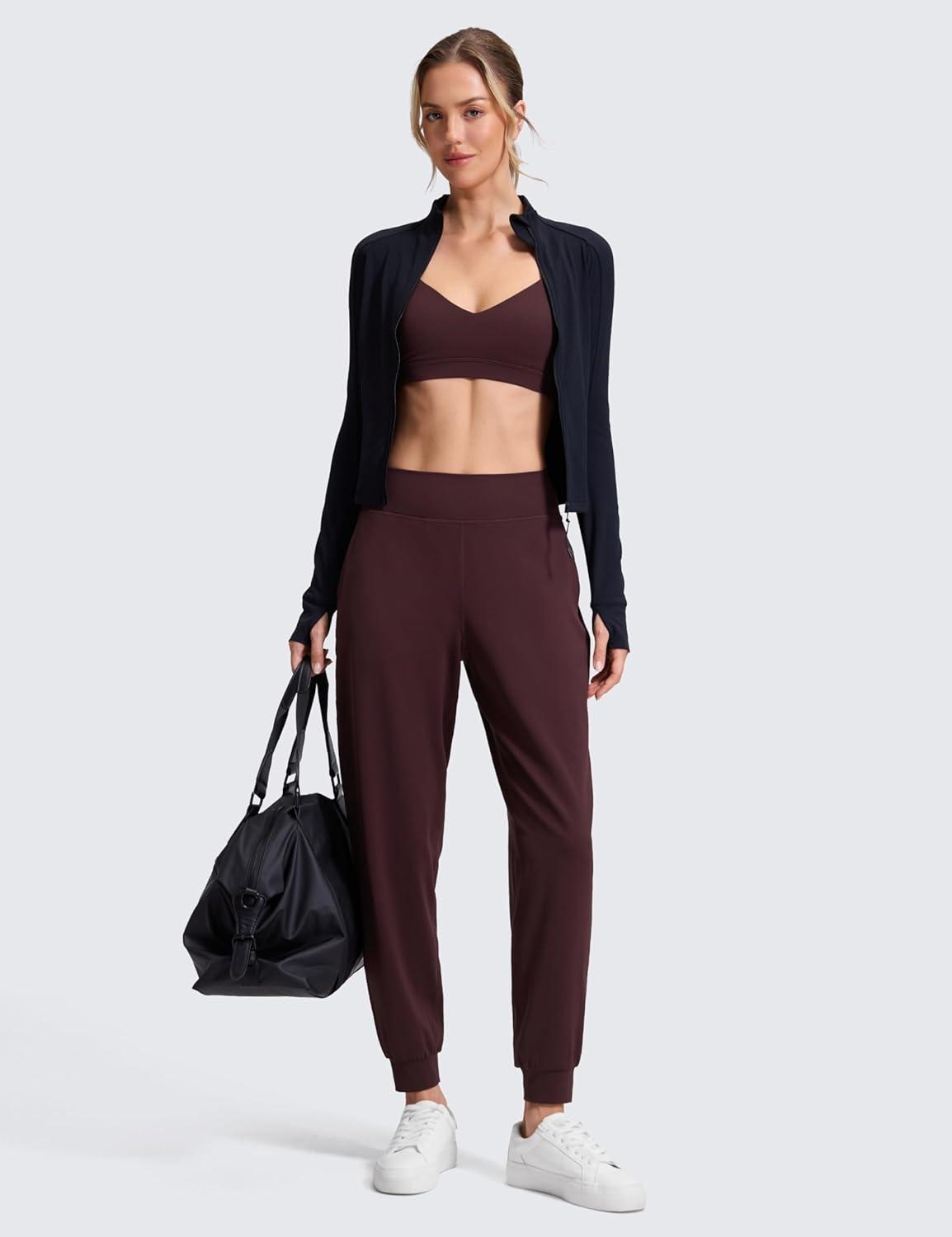CRZ YOGA Butterluxe High Waisted Joggers for Women 28″ – Casual Lounge Workout Yoga Pants with Pockets(Hot Fudge Brown)