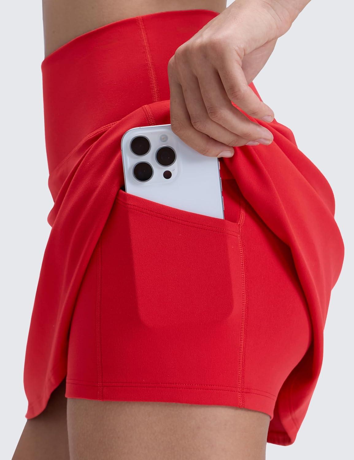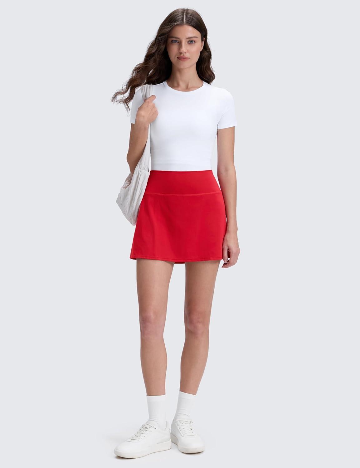 CRZ YOGA Butterluxe High Waisted Tennis Skirts for Women – Mini Lined A Line Golf Casual Skort with Inner Pockets(Aurora Red)