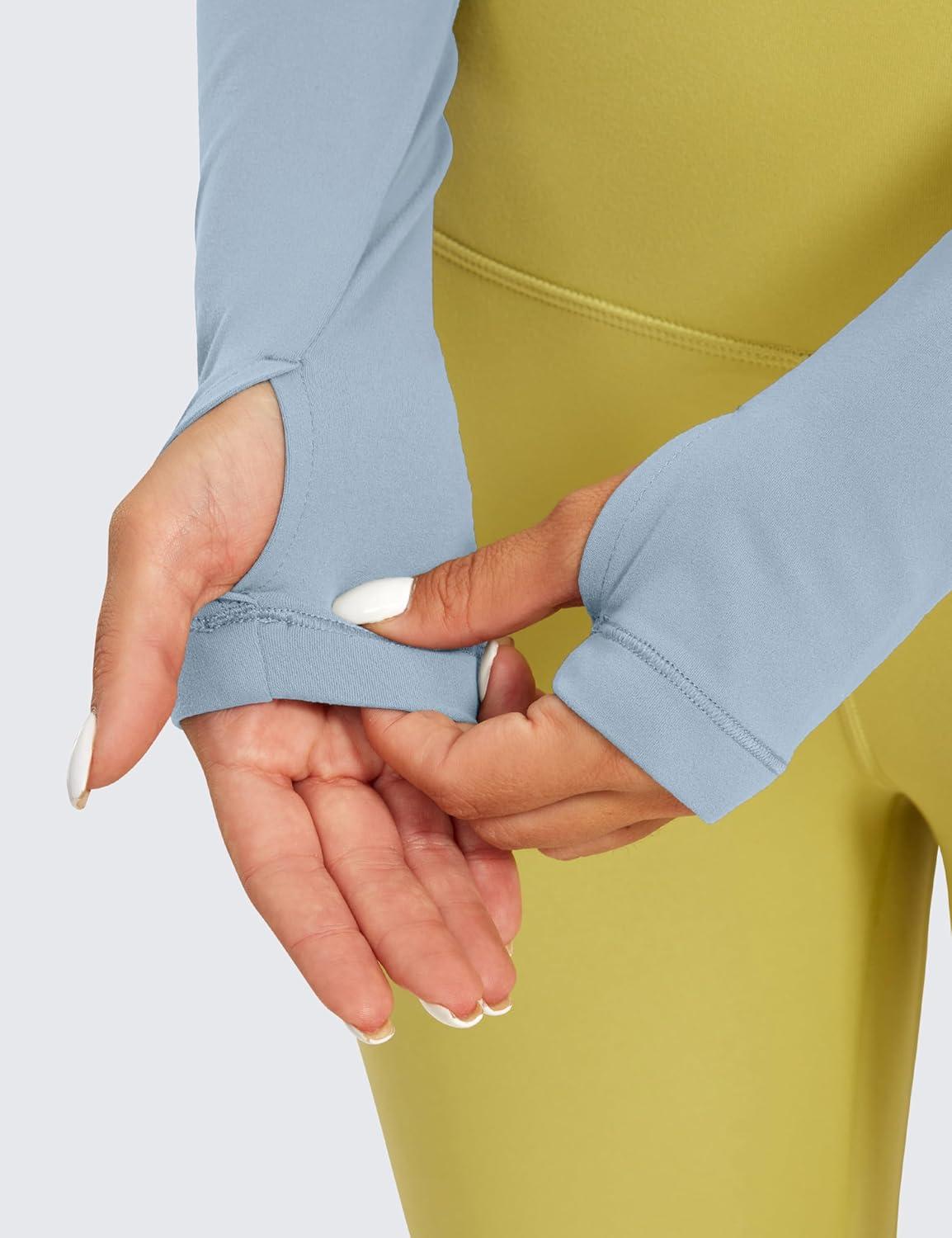 CRZ YOGA Butterluxe Long Sleeve Crop Tops for Women Slim Fit Workout Shirts Cropped Athletic Gym T-Shirts(Sparkle Blue)