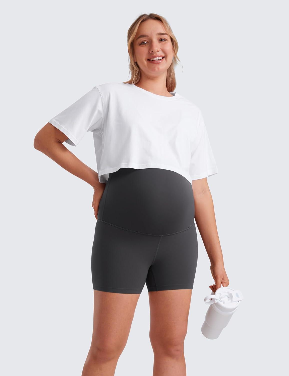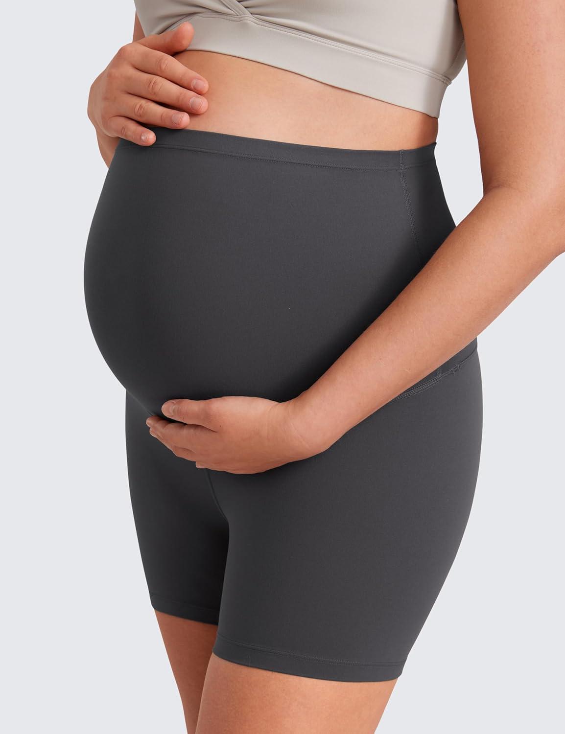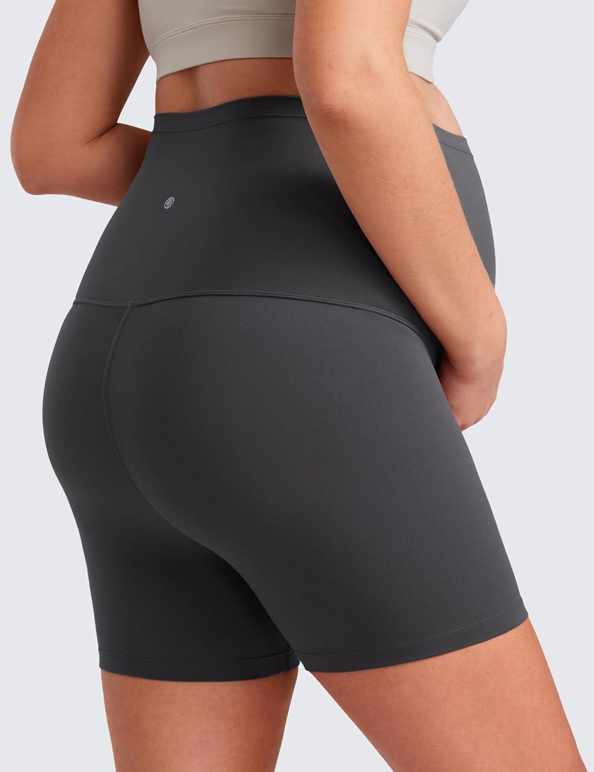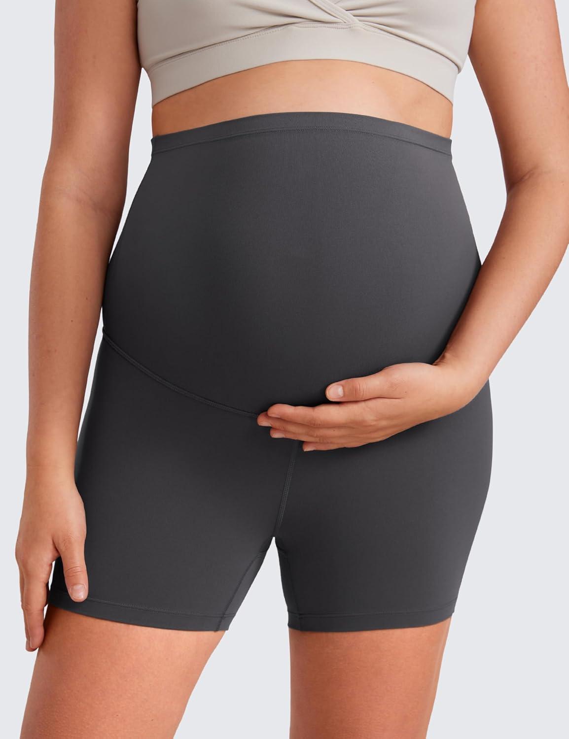 imageCRZ YOGA Butterluxe Maternity Biker Shorts 4  Over The Belly Pregnancy Yoga Workout Womens Activewear Buttery SoftMysterious Grey
