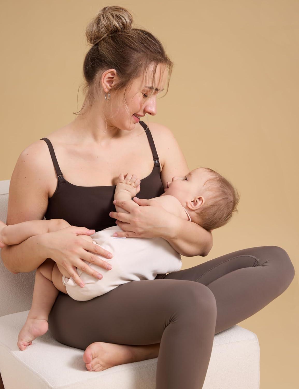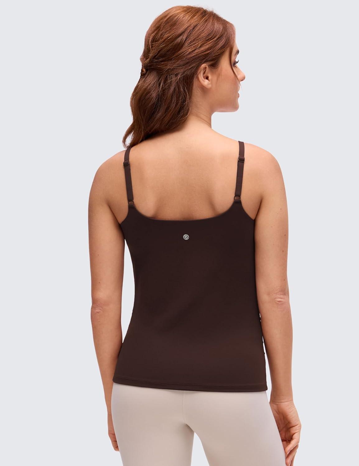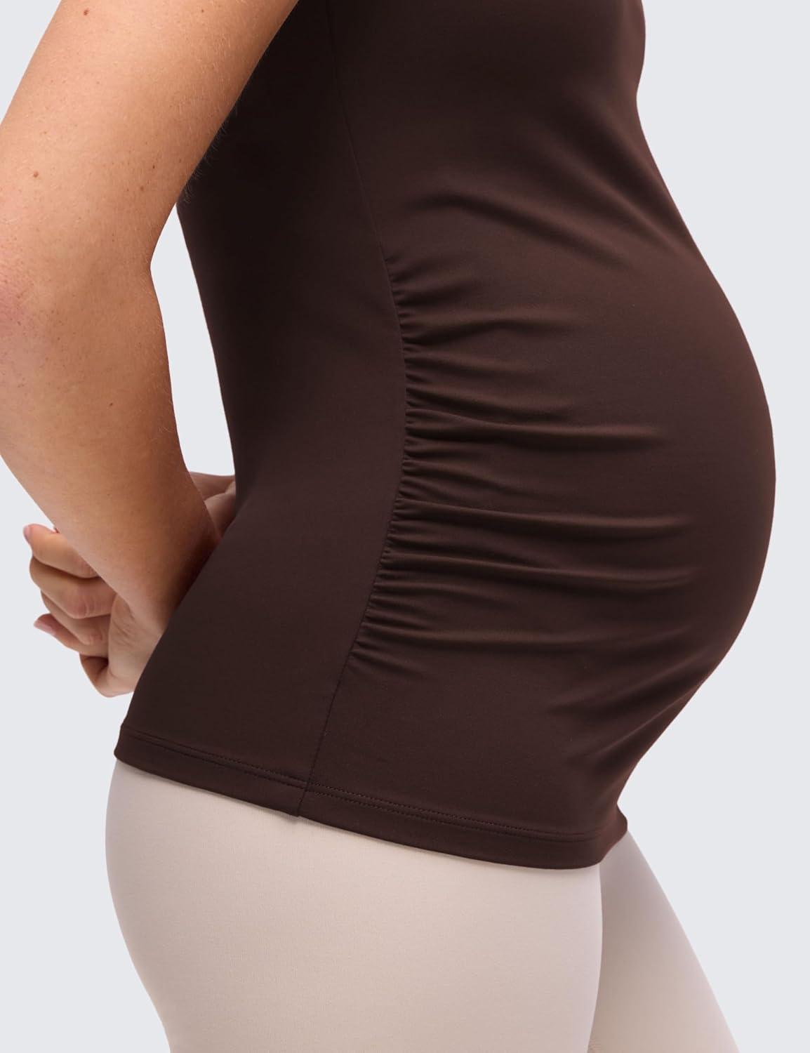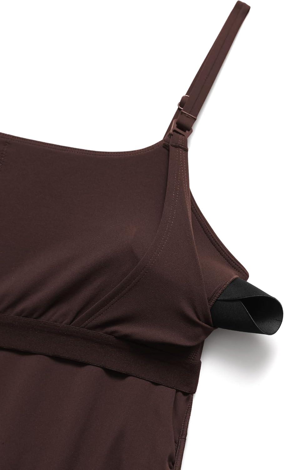 CRZ YOGA Butterluxe Maternity Clip Down Nursing Tank Tops – Adjustable Straps Womens Pregnancy Casual Cami Shirt Built in Bra(Hot Fudge Brown)