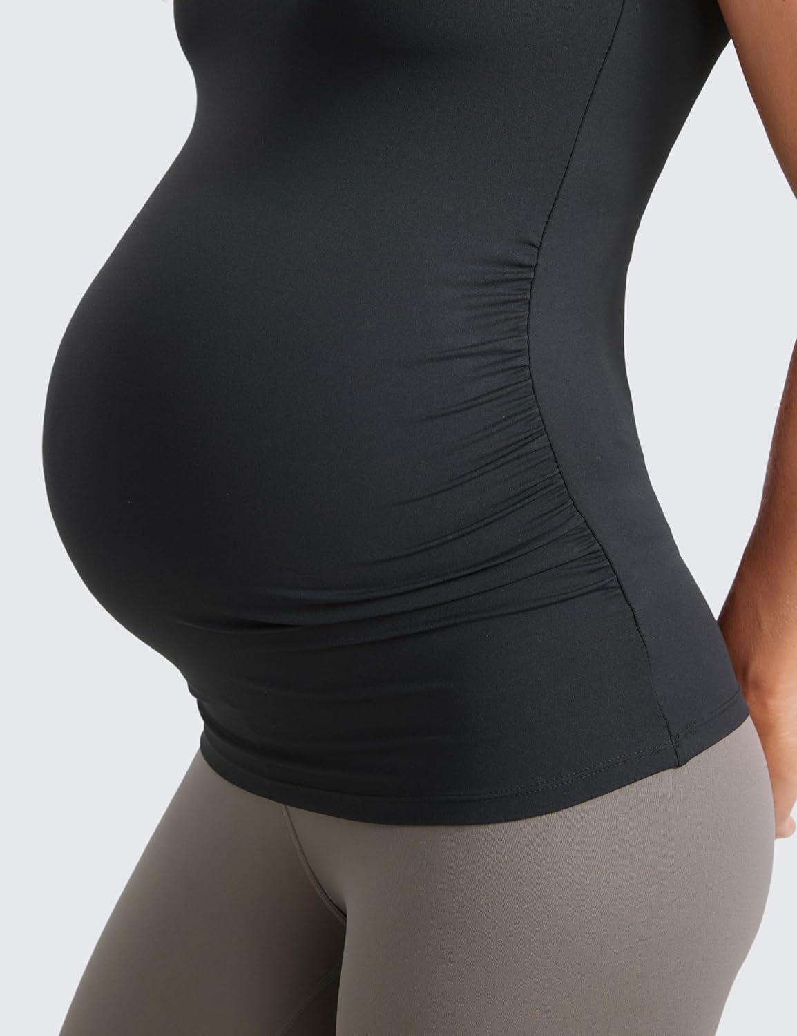 CRZ YOGA Butterluxe Maternity Square Neck Tank Tops – Ruched Sleeveless Womens Pregnancy Yoga Tee Shirt with Built in Bra(Black)