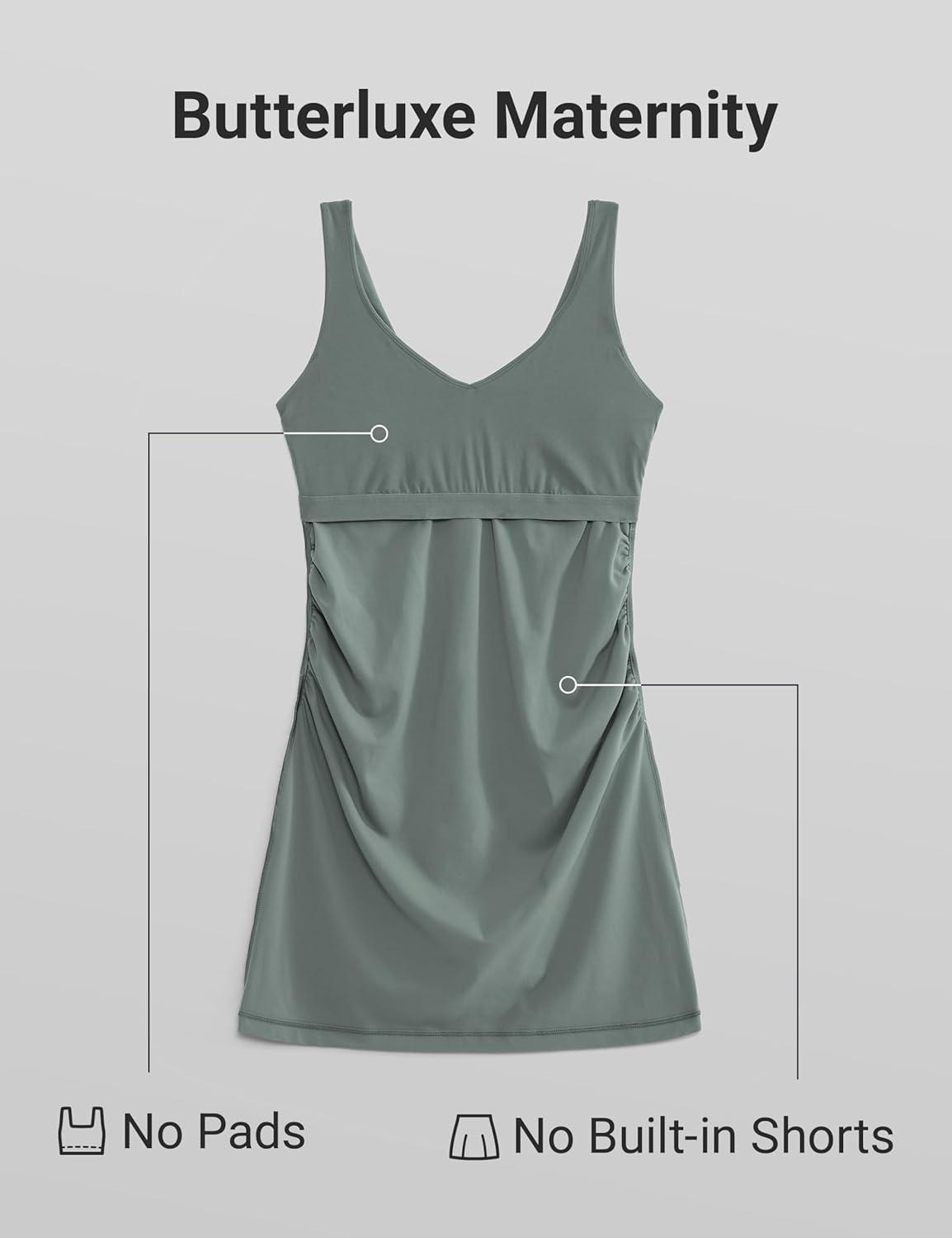 imageCRZ YOGA Butterluxe Maternity V Neck Mini Dress Linerless  Ruched Tennis Athletic Casual Pregnancy Womens Bodycon SummerGrey Sage