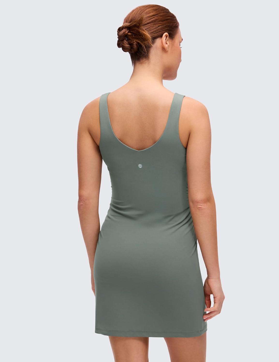 CRZ YOGA Butterluxe Maternity V Neck Mini Dress Linerless – Ruched Tennis Athletic Casual Pregnancy Womens Bodycon Summer(Grey Sage)