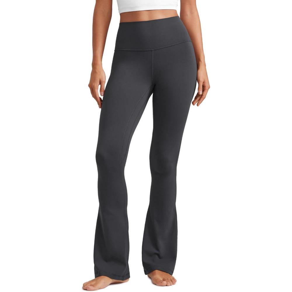 CRZ YOGA Butterluxe Mini Flared Leggings 30″/31.5″/33” – High Waist Bootcut Casual Lounge Women Yoga Pants with Pocket(Mysterious Grey)