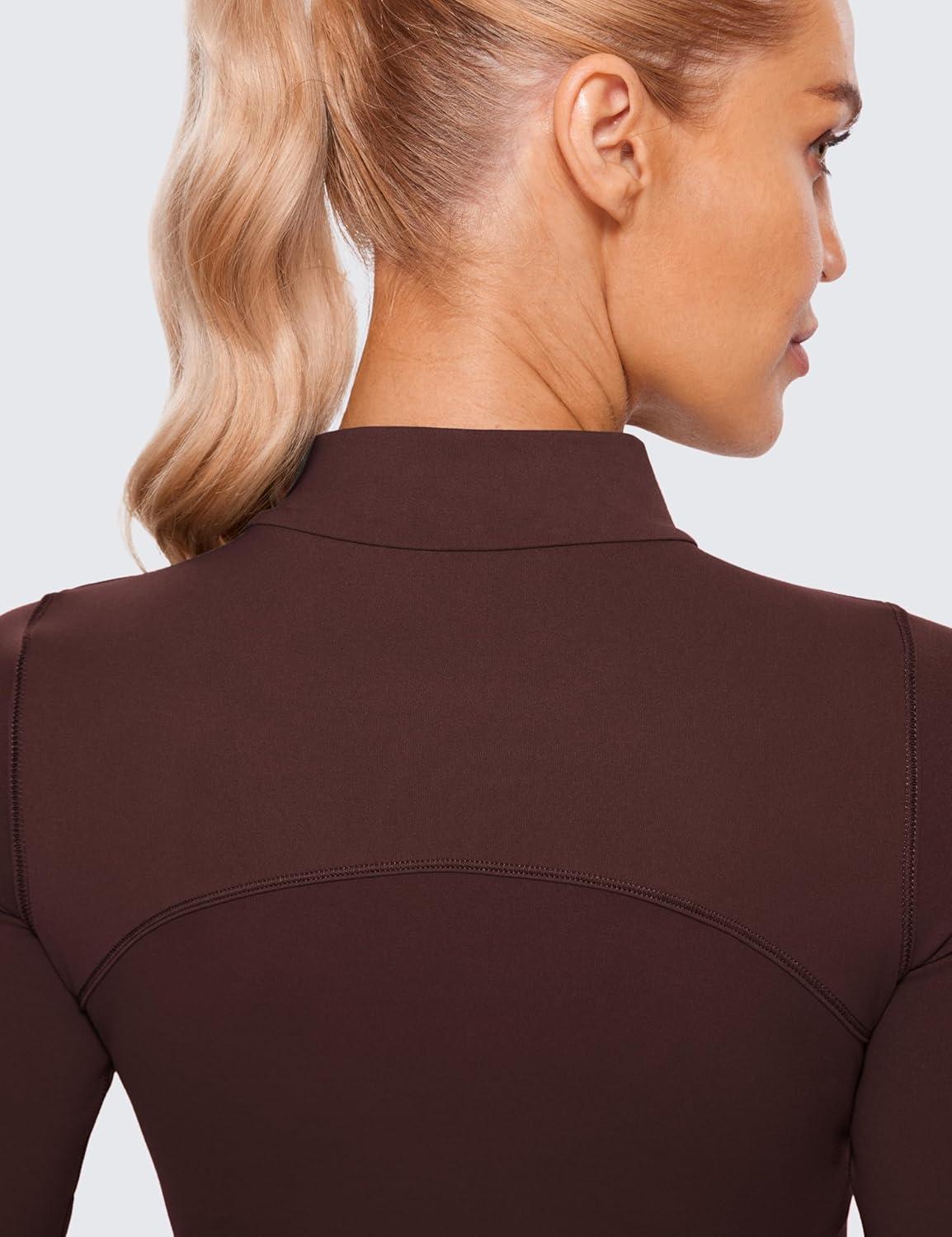 CRZ YOGA Butterluxe Mock Neck Long Sleeve Shirts for Women – Workout Casual Tops Turtleneck Crop Slim Fall Base Layer(Taupe)