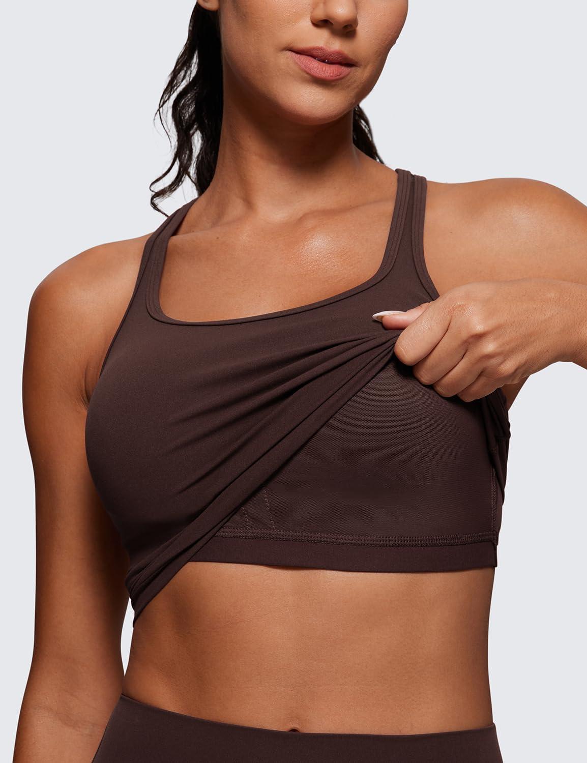 CRZ YOGA Butterluxe Racerback Crop Tank Tops for Women – Padded Y-Back Longline Sports Bras Scoop Neck Workout Yoga(Hot Fudge Brown)