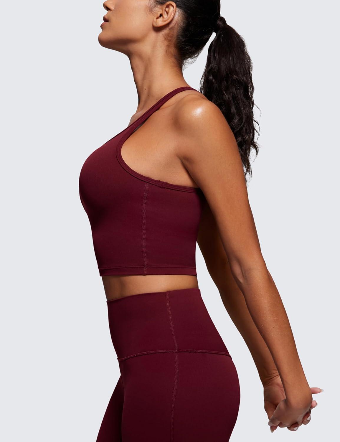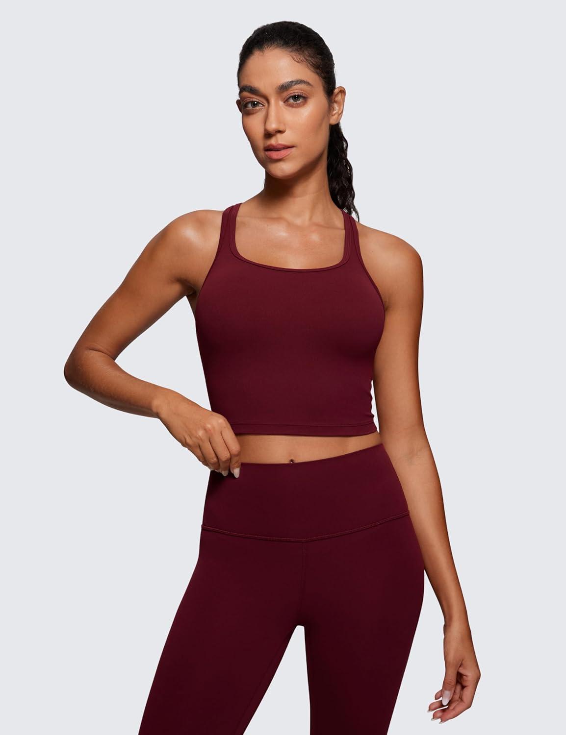 CRZ YOGA Butterluxe Racerback Crop Tank Tops for Women – Padded Y-Back Longline Sports Bras Scoop Neck Workout Yoga(Red Merlot)
