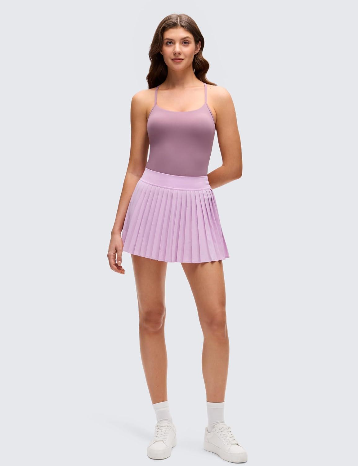 CRZ YOGA Butterluxe Racerback Tank Tops for Women – Scoop Neck Spaghetti Strap Padded Workout Camisole with Built in Bra(Light Lavender)