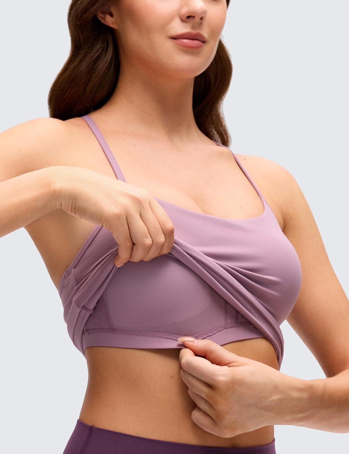 CRZ YOGA Butterluxe Racerback Tank Tops for Women - Scoop Neck Spaghetti Strap Padded Workout Camisole with Built in Bra(Light Lavender)