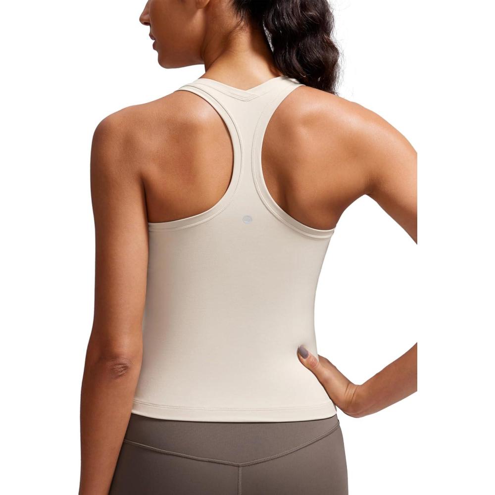 CRZ YOGA Butterluxe Racerback Tank Tops for Women – Yoga Workout Casual Gym Athletic Camisole Tight Sleeveless Shirts(Mojave Tan)